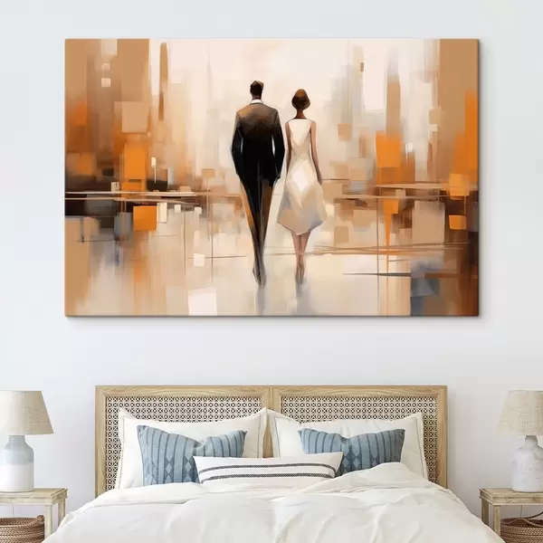 Quadri Astrazione con sagome di città e due figure Nr s43516