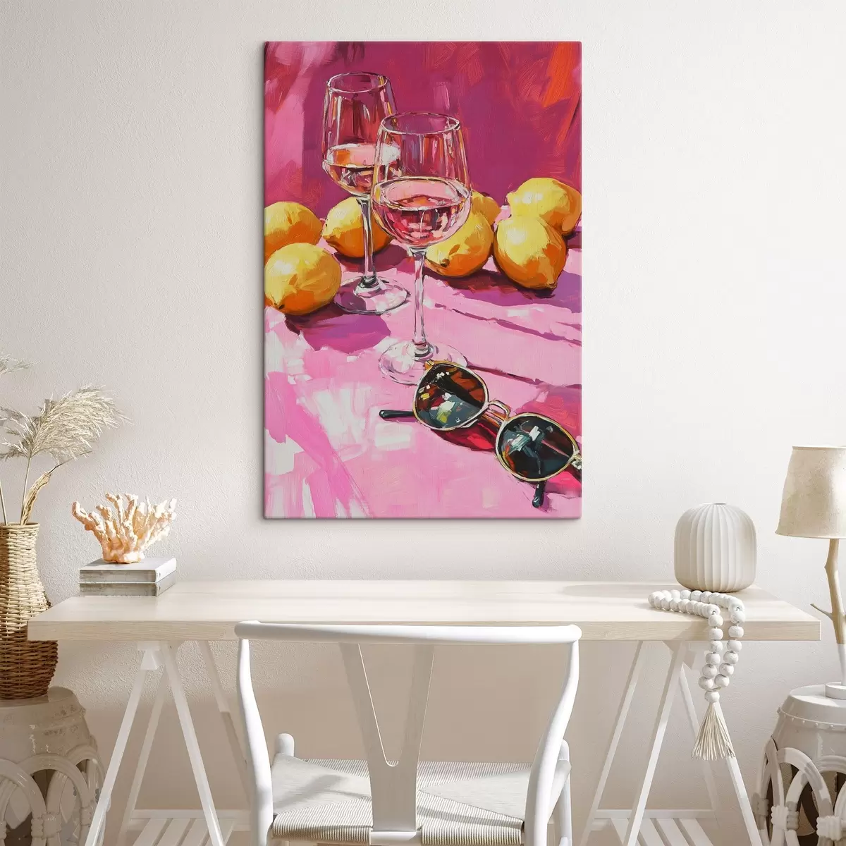 Quadri Astrazione in stile olio con bicchieri di bevande, limoni e occhiali da sole Nr s43884