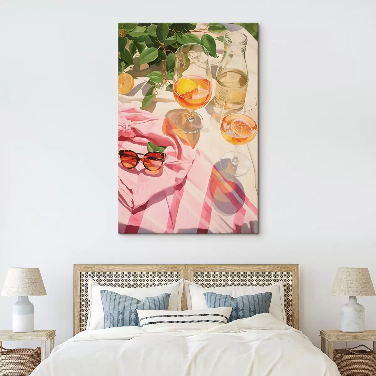 Quadri Estate, bicchieri con champagne, piante verdi, colori caldi Nr s43885