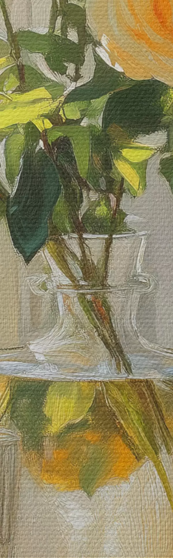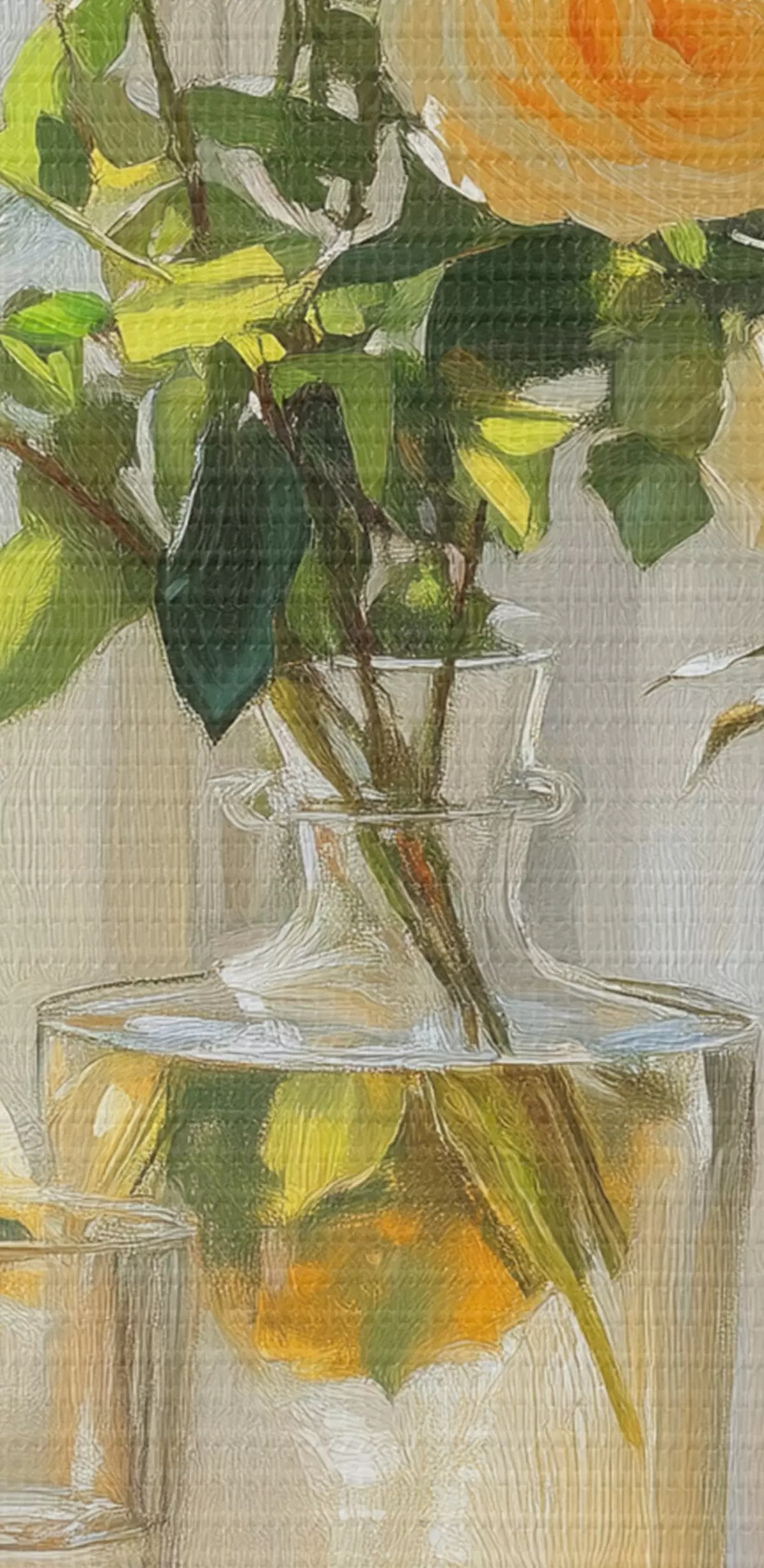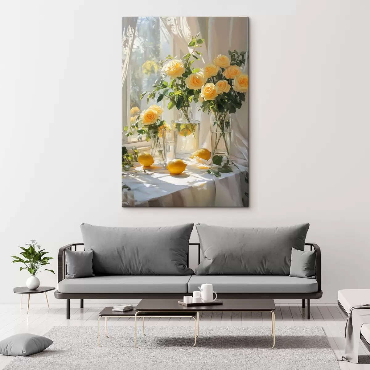Quadri Rose in vaso, disegno a olio, luce delicata del sole, limoni, primavera Nr s43887