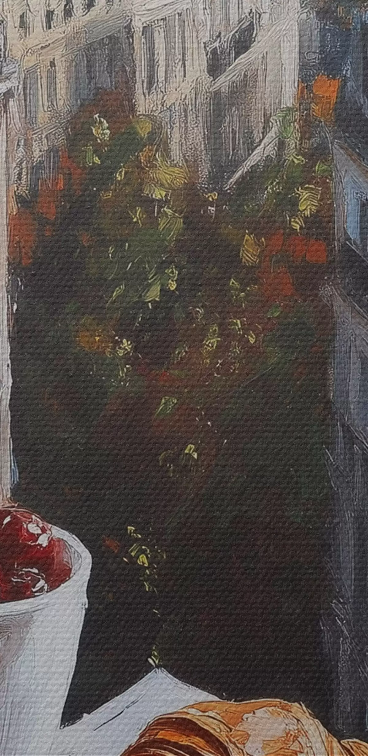Quadri Mattina a Parigi, caffè con croissant, vista della città, disegno ad olio Nr s43892