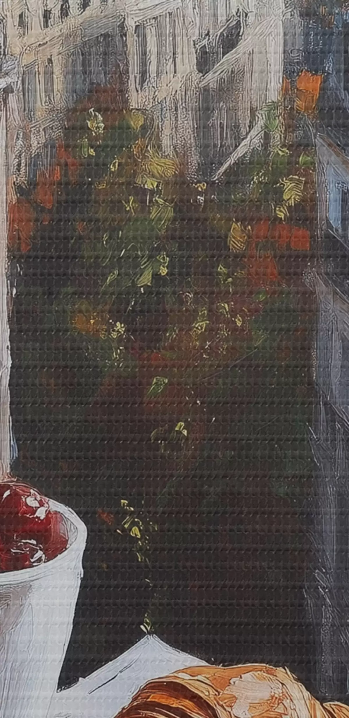 La fine trama dei fili di questa tela ricorda la superficie delle tele degli artisti professionisti.