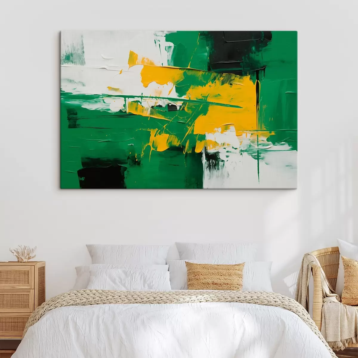 Quadri Pittura ad olio astratta con colori bianchi, verdi e gialli in stile pittura ad olio Nr s43944