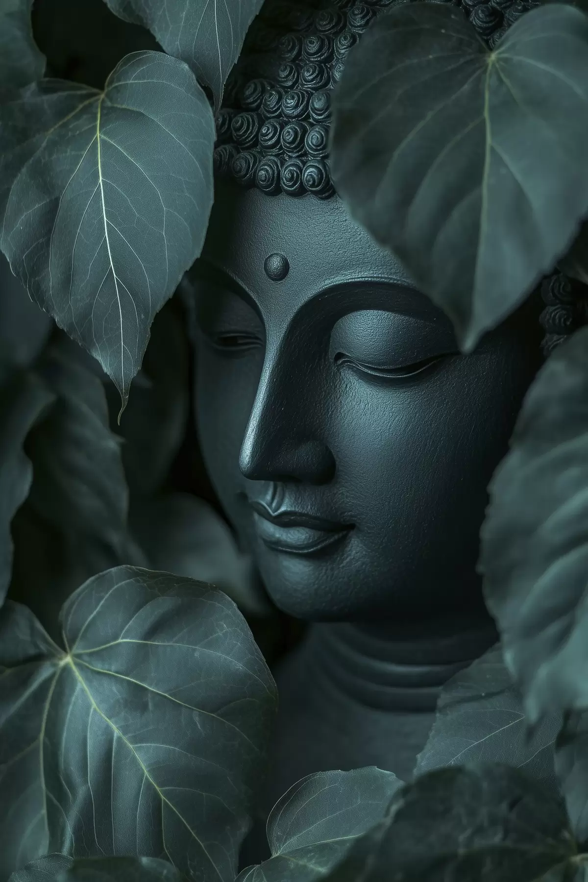 Quadri Buddha tra le foglie verdi, buddismo, tropicale, realismo Nr s44004