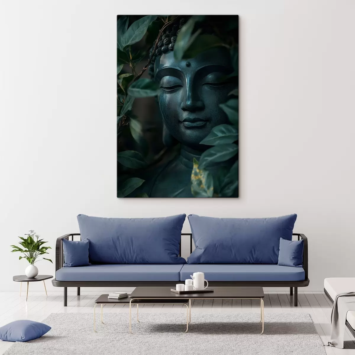 Quadri Buddha verde con foglie tropicali, realismo Nr s44005
