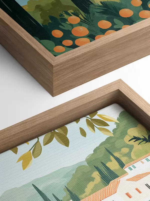 Quadri Paesaggi mediterranei con aranci e case, costa del mare Nr s44027