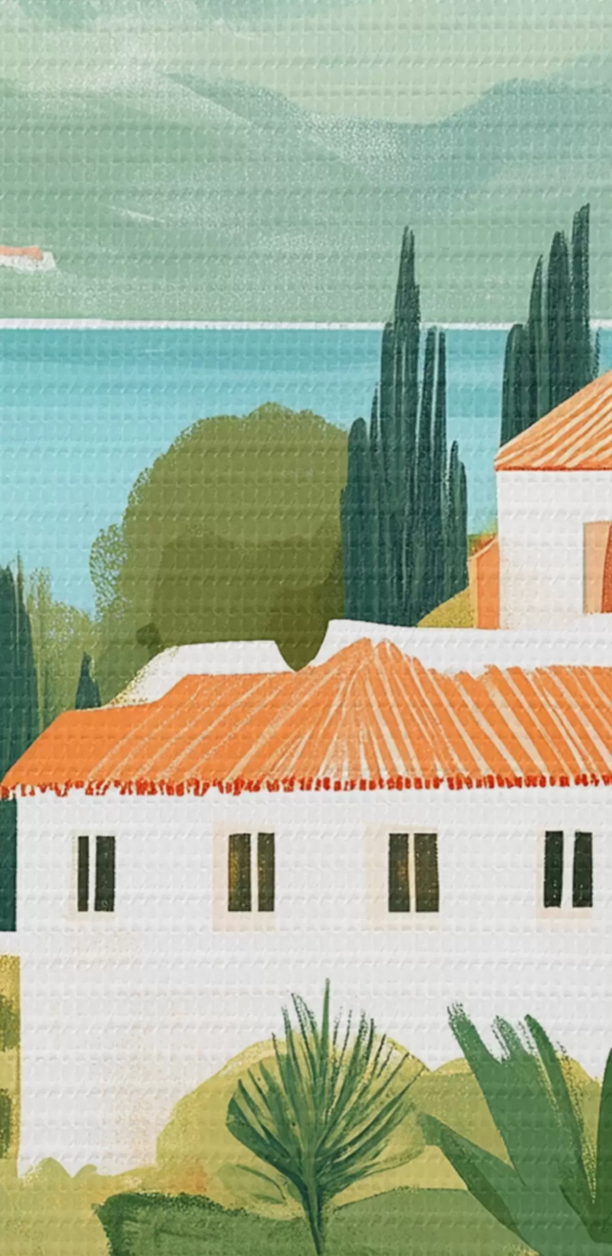 carta da parati Paesaggi mediterranei con aranci e case, costa del mare nr. s44027