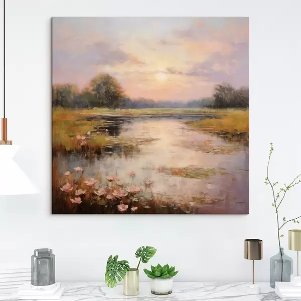 Quadri Corpo idrico con fiori al tramonto Nr s44044