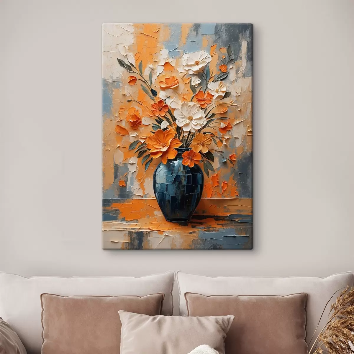Quadri Fiori bianchi e arancioni in vaso in stile pittura ad olio Nr s44059