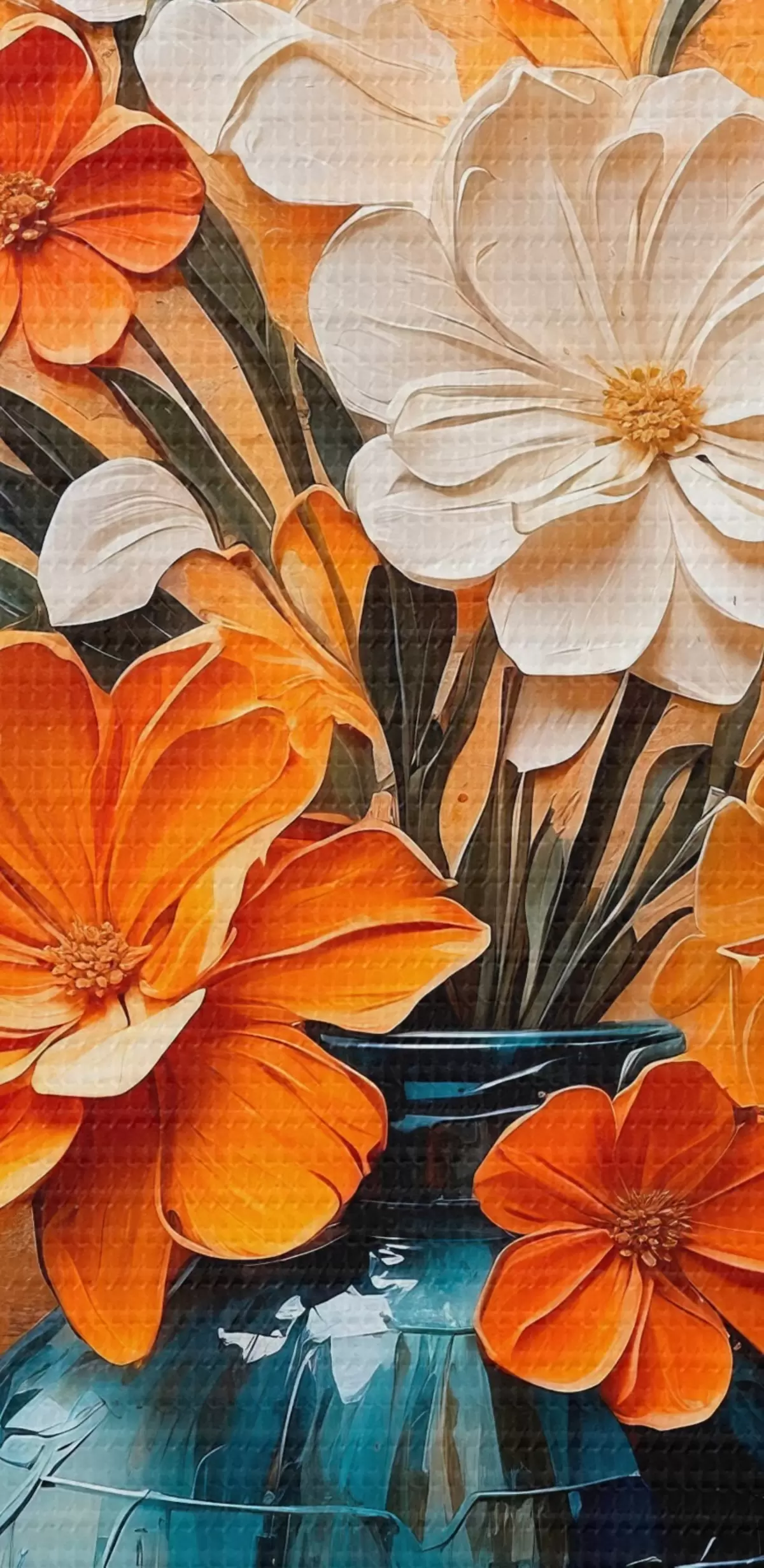 carta da parati Fiori bianchi e arancioni in vaso in stile pittura ad olio nr. s44059