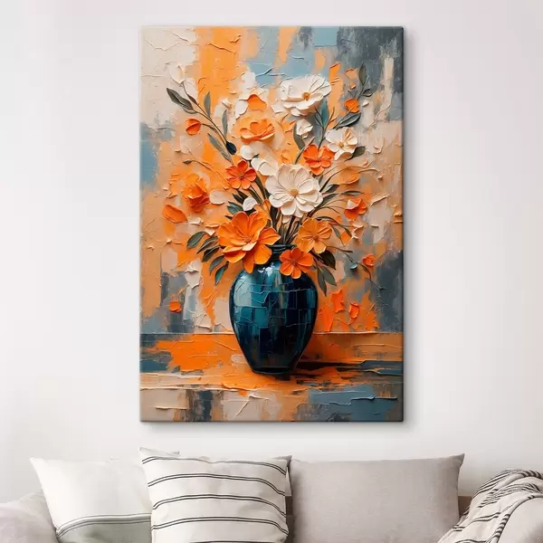 Quadri Fiori bianchi e arancioni in vaso in stile pittura ad olio Nr s44059