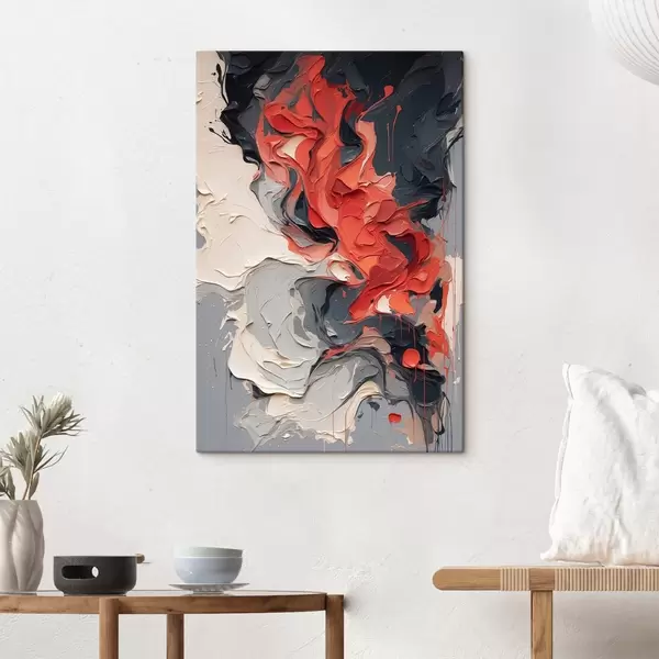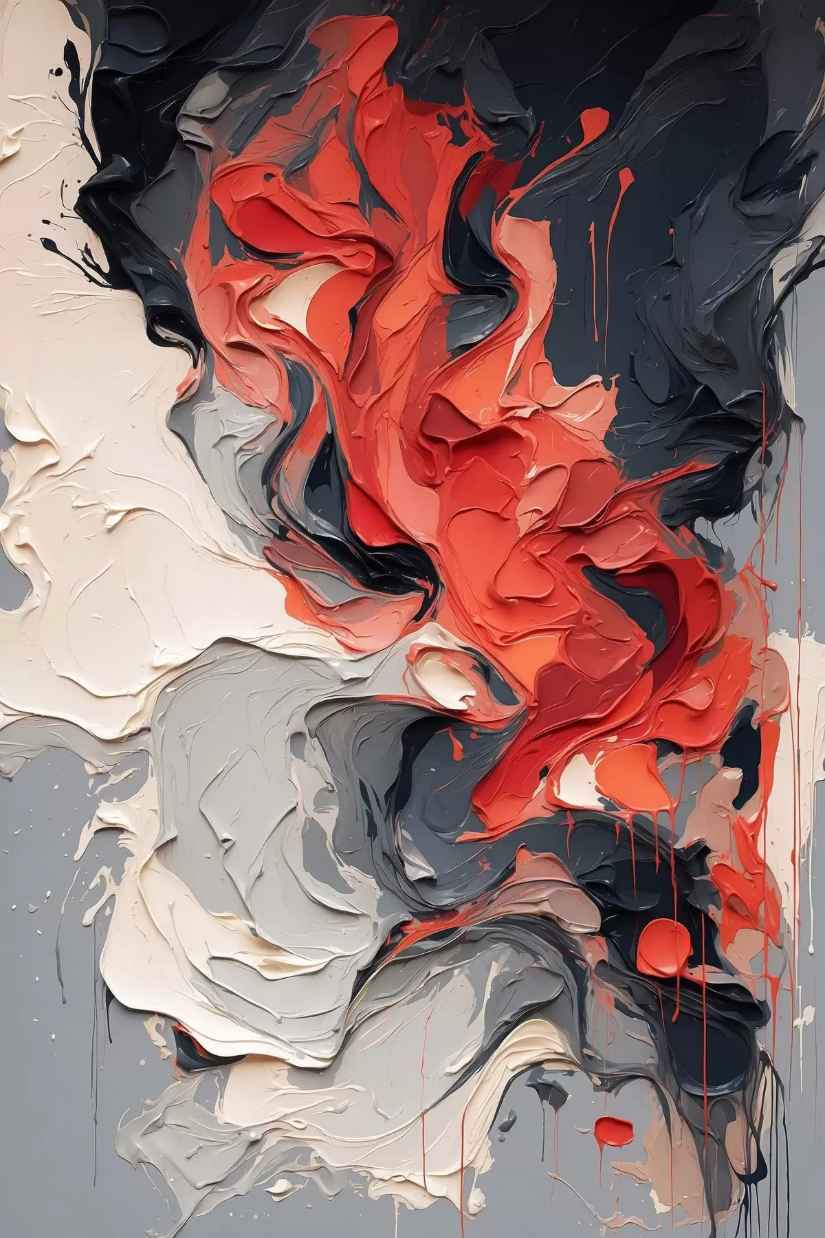 Quadri Pittura ad olio astratta con colori rosso, nero e grigio Nr s44079