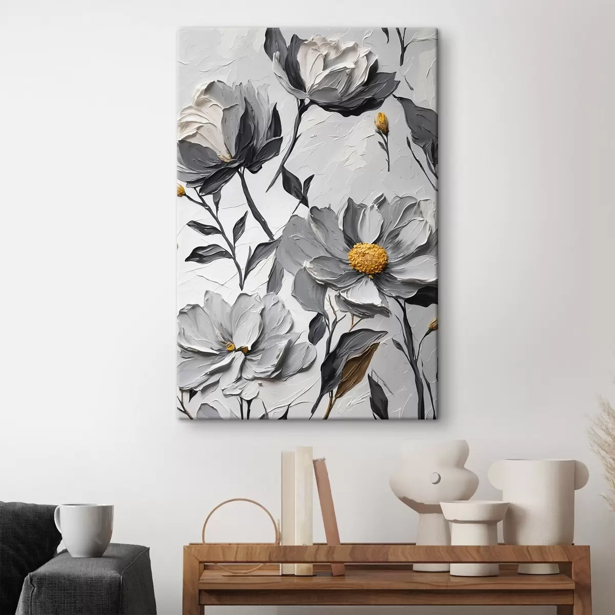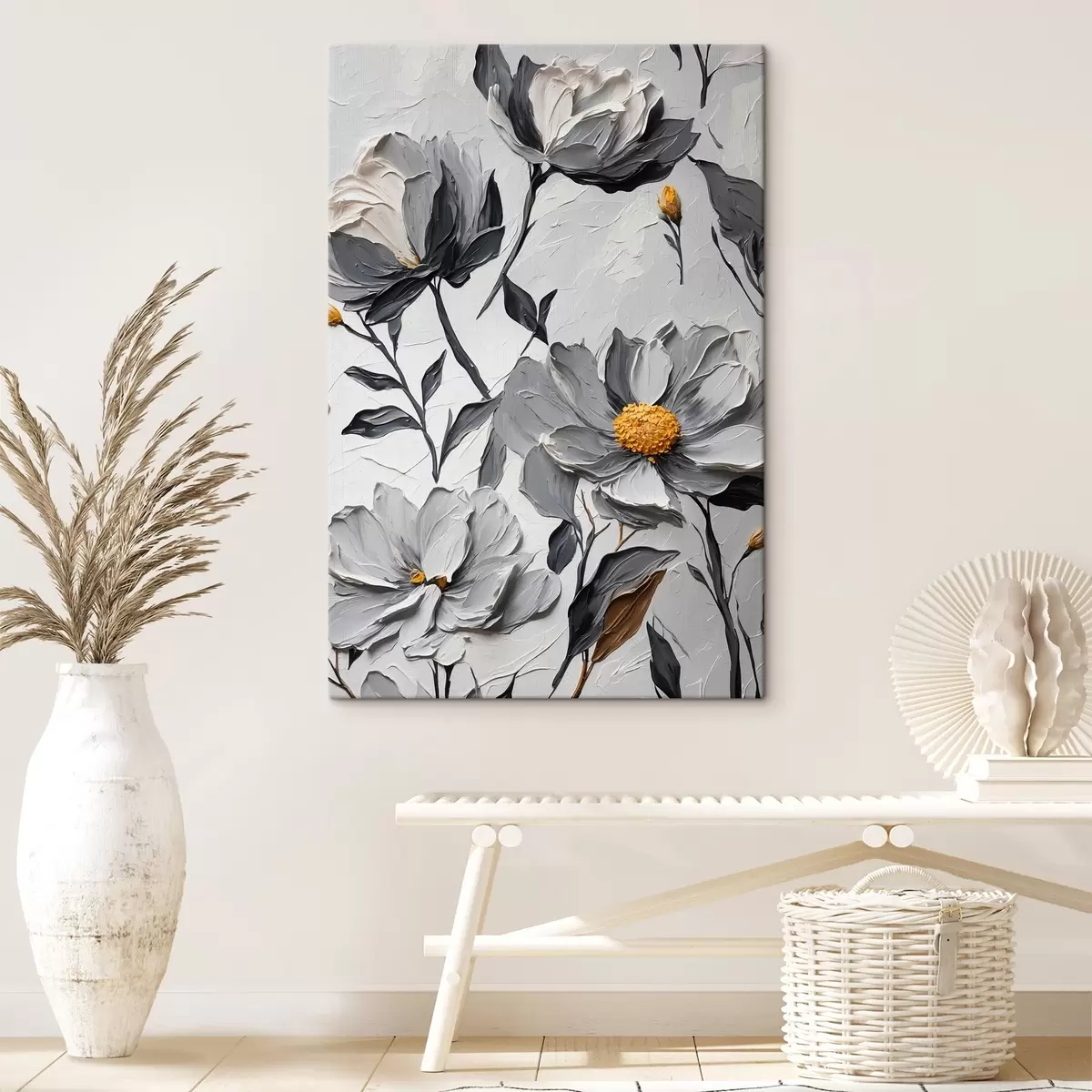 Quadri Fiori grigi su sfondo grigio in stile pittura ad olio Nr s44080