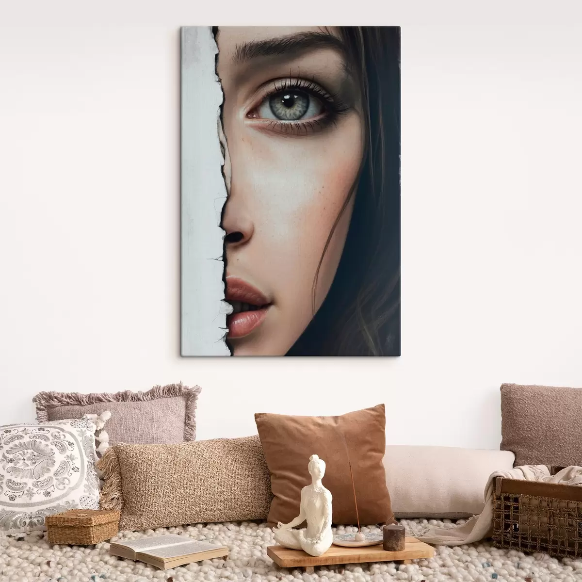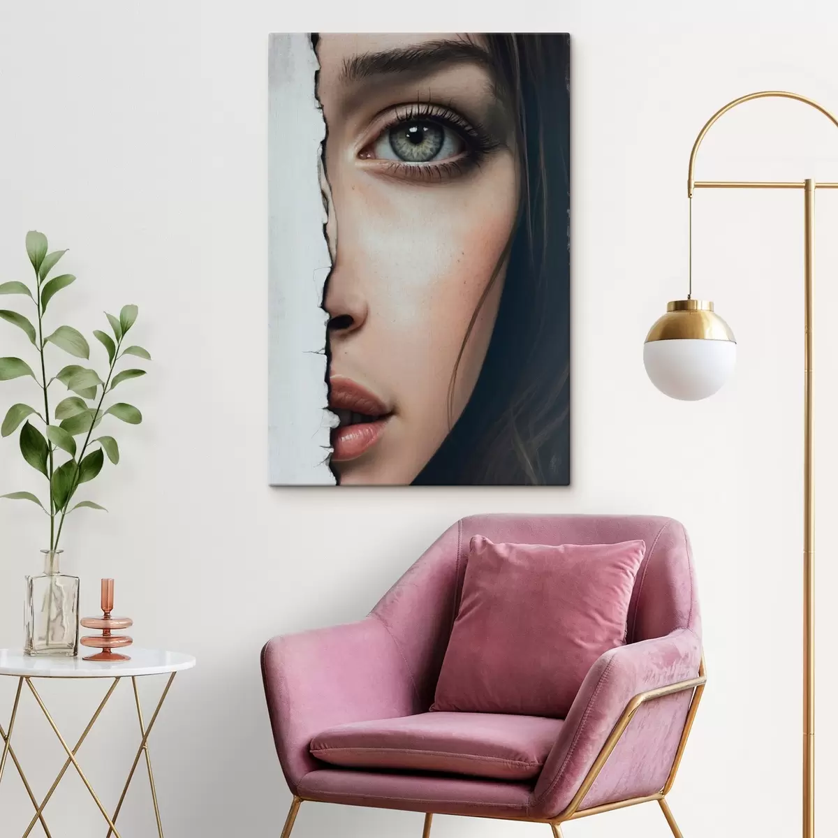 Quadri Volto di ragazza dietro un muro bianco Nr s44083