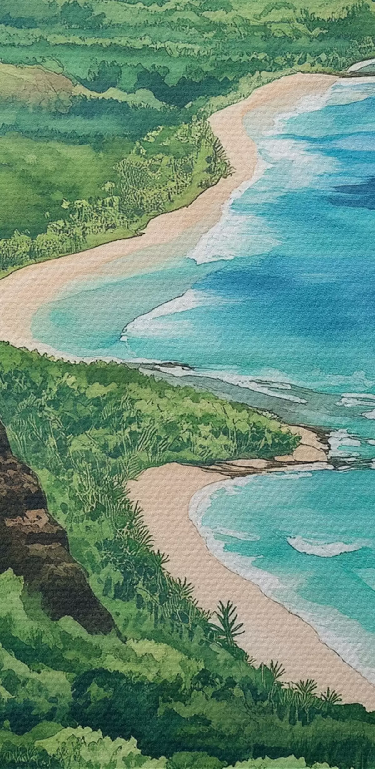 carta da parati Montagne verdi, Hawaii, oceano, tropicale, acquerello nr. s44143