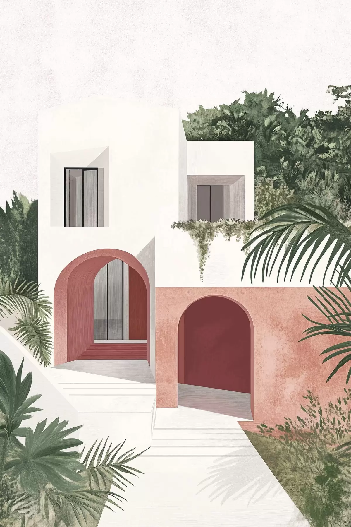 carta da parati Villa con giardino tropicale, mediterranea, in stile acrilico nr. s44151