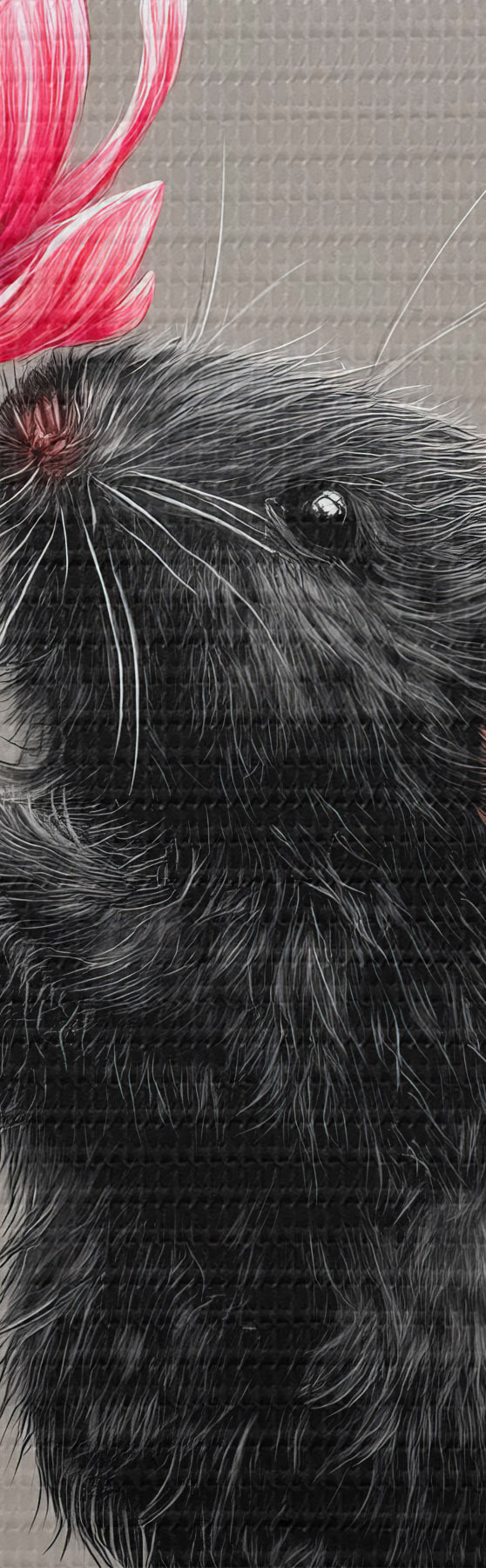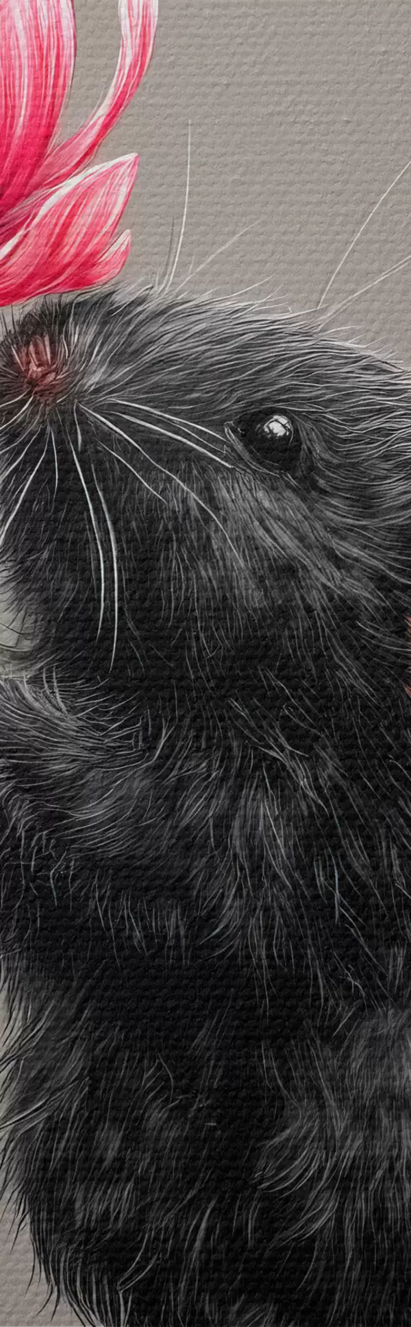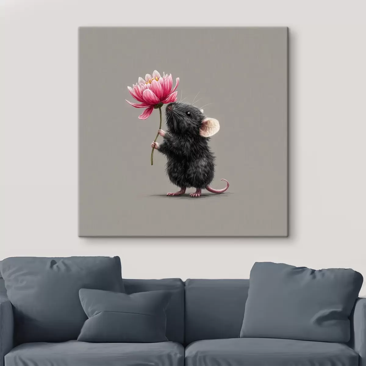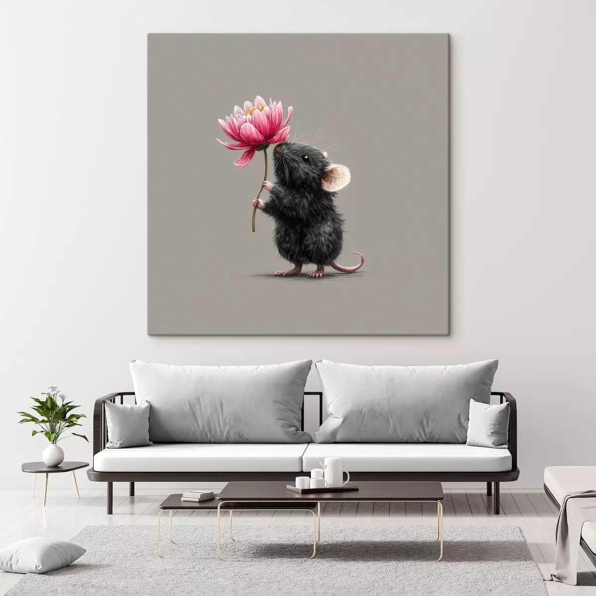 Quadri Un grazioso topo che aspira l'aroma di una peonia rosa Nr s44248