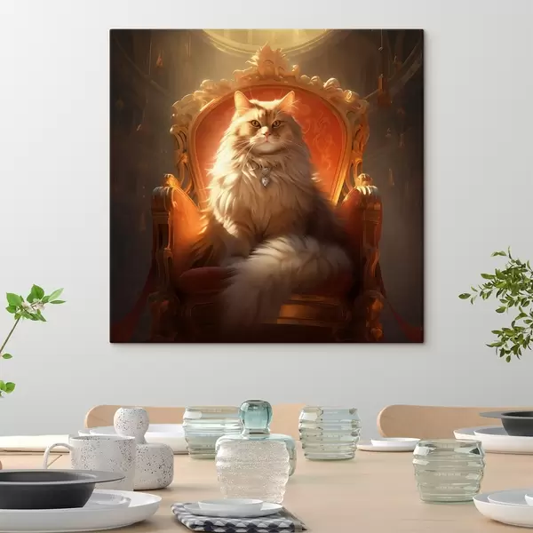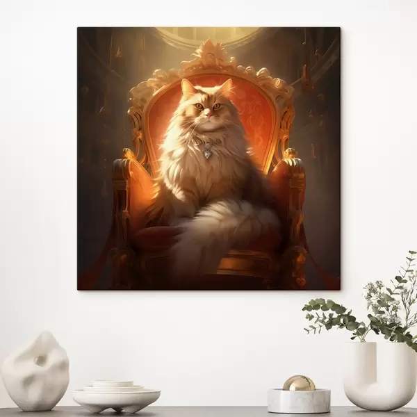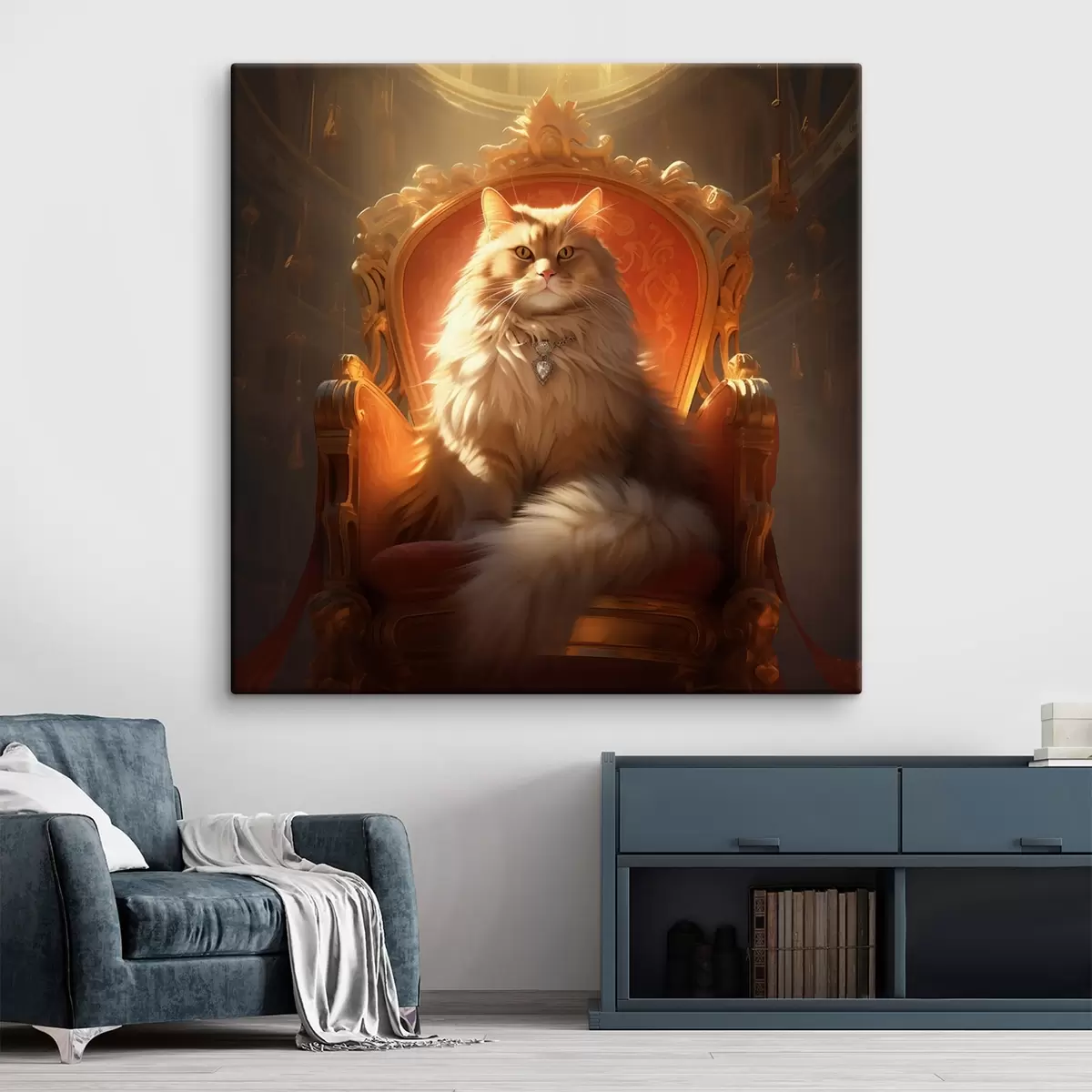 Quadri Gatto regale con occhi d'ambra su un trono tra i raggi della gloria in stile barocco Nr s44250