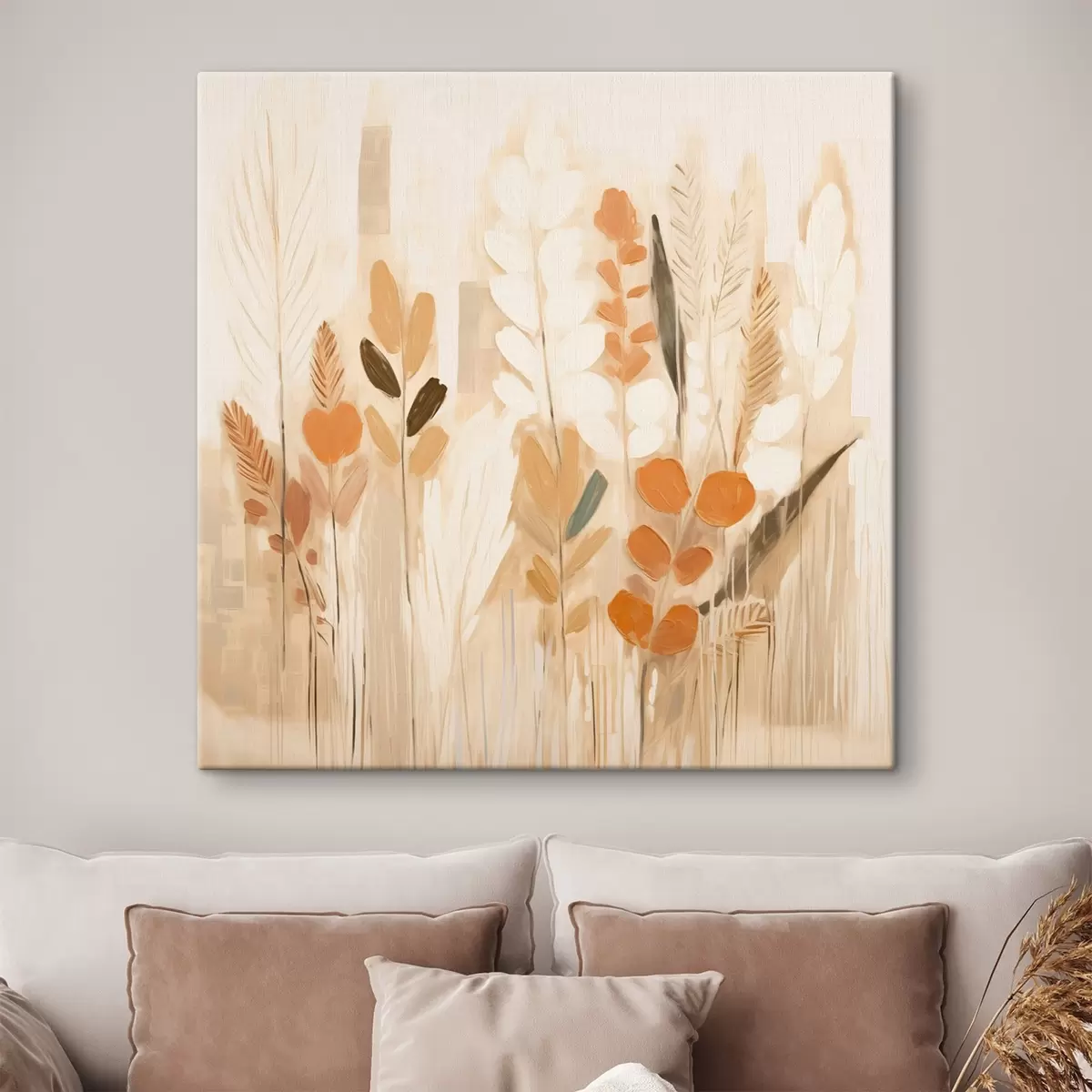 Quadri Calda astrazione con erbe di campo e fiori in una tavolozza beige-arancio in stile Art Nouveau Nr s44252