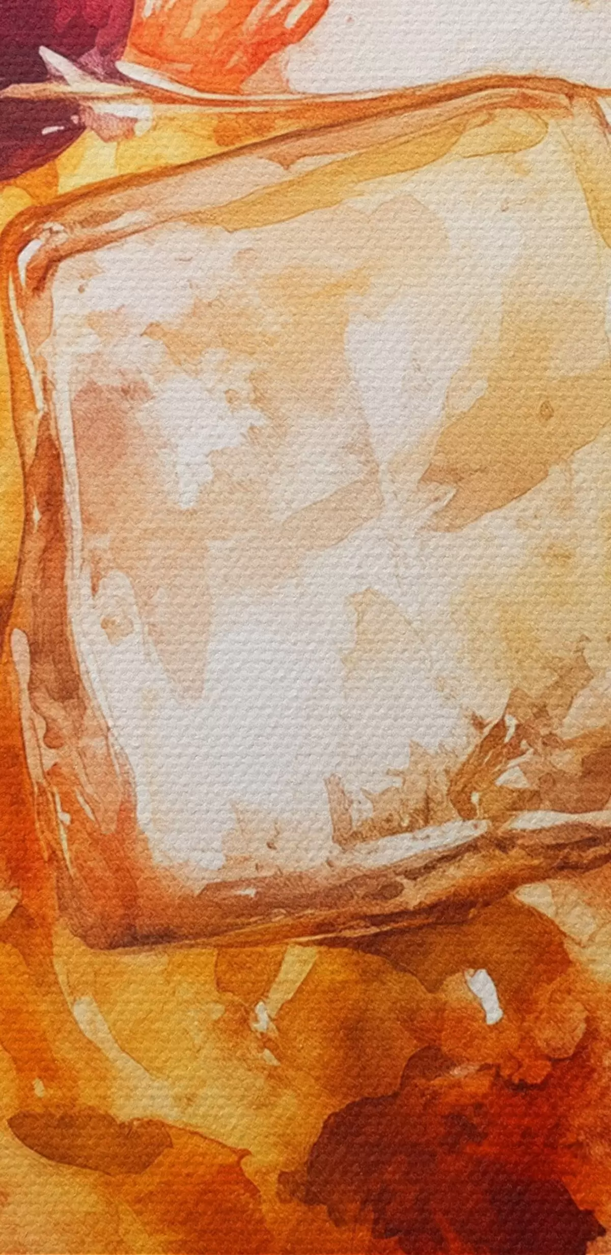 Quadri Cocktail all'arancia con ghiaccio e ciliegia, stile acquerello Nr s44303