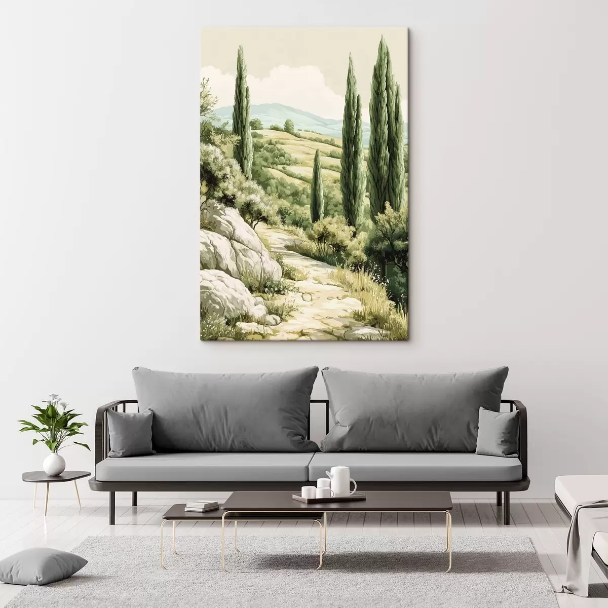 Quadri Paesaggi estivi con cipressi e colline verdi, stile rustico Nr s44308