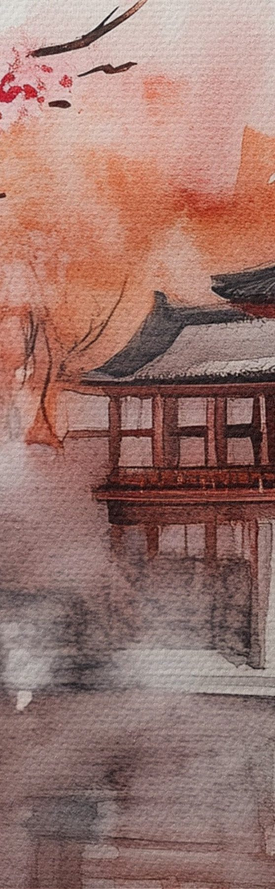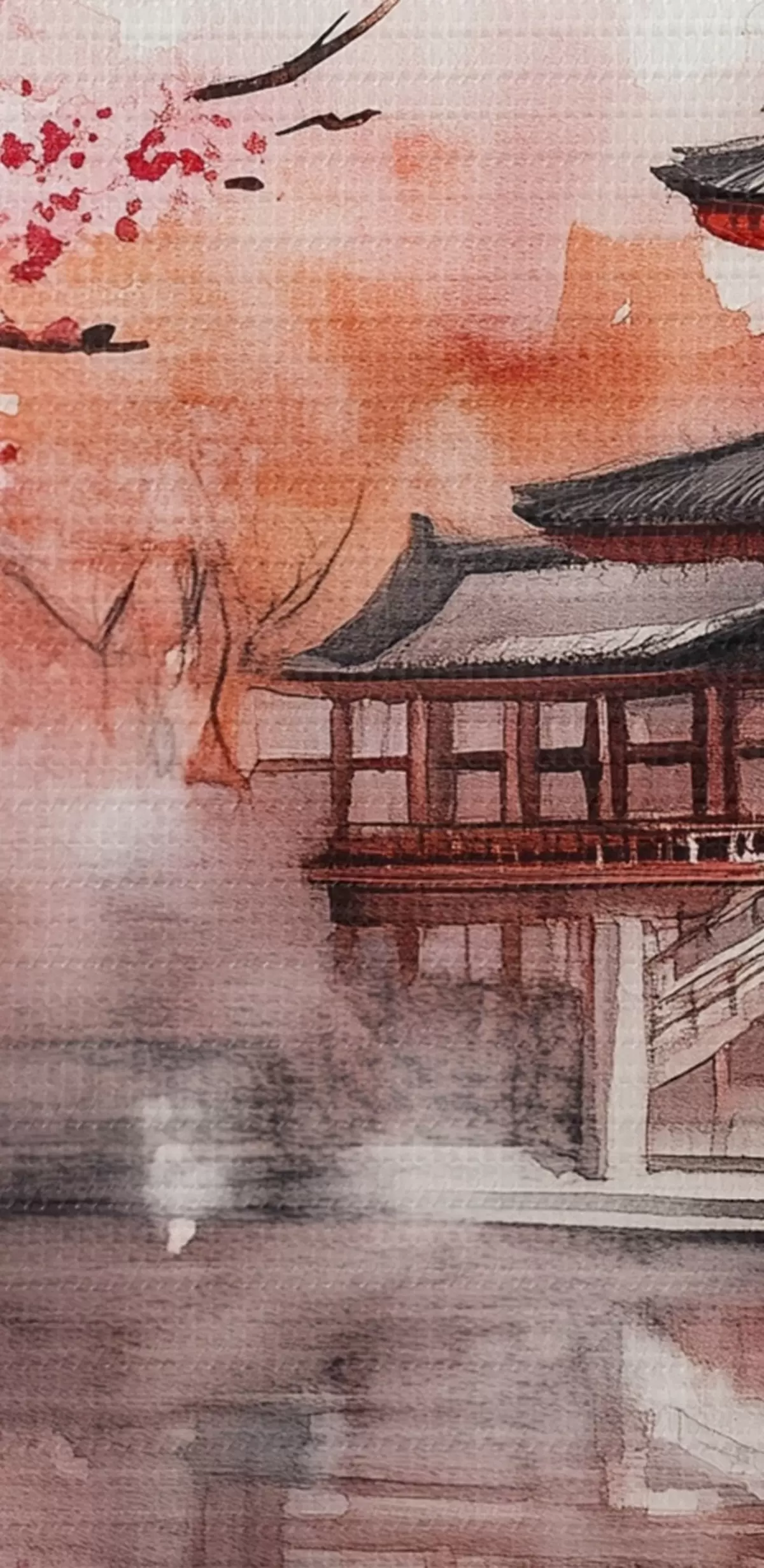 carta da parati Bellissimo paesaggio del Giappone con ciliegio in fiore e casa sul lago nr. s44310