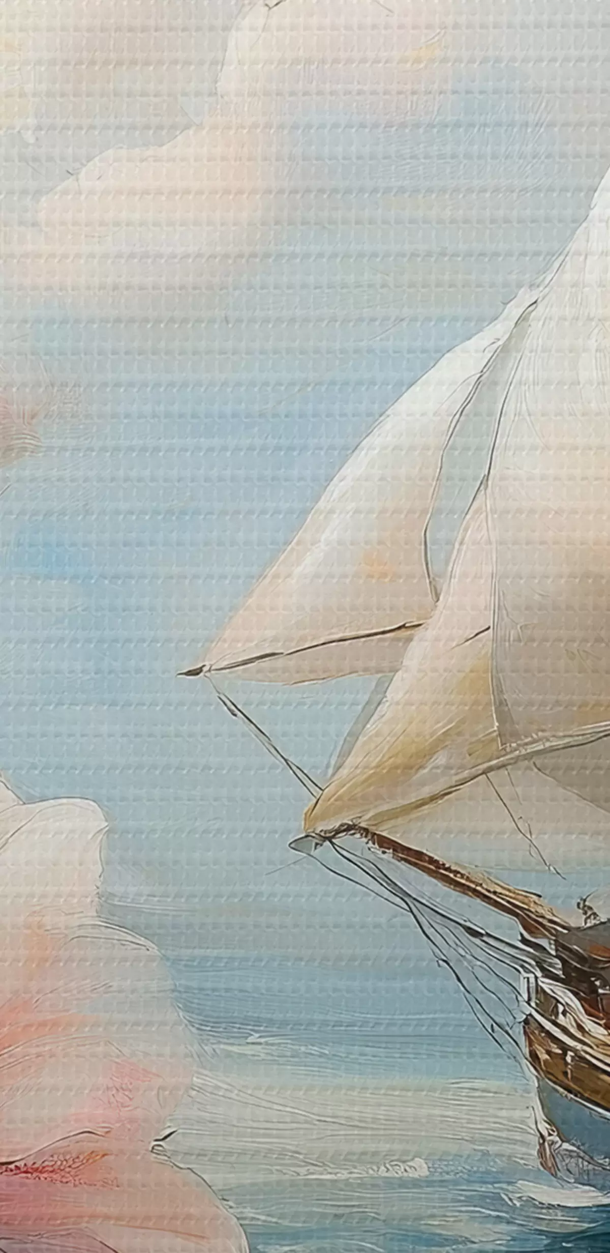 carta da parati Barca sul mare e grandi fiori nr. s44330