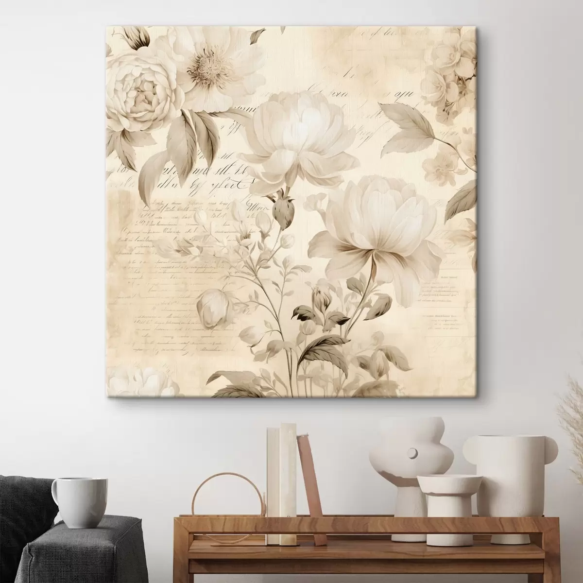 Quadri Composizione vintage di fiori bianco crema Nr s44332