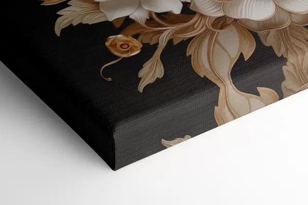 Quadri Voluminosi fiori bianchi su sfondo nero Nr s44340