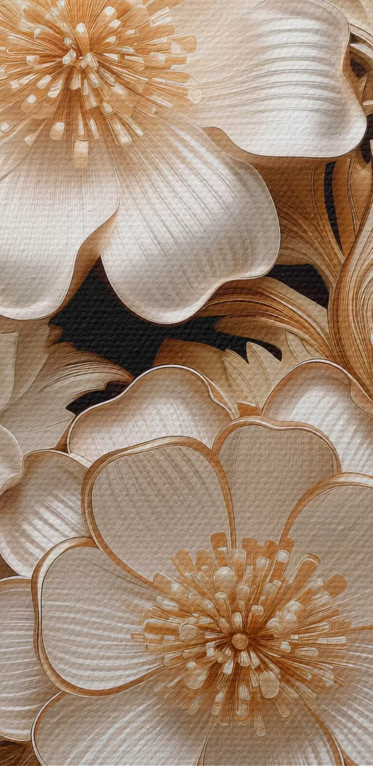 carta da parati Voluminosi fiori bianchi su sfondo nero nr. s44340