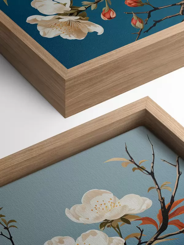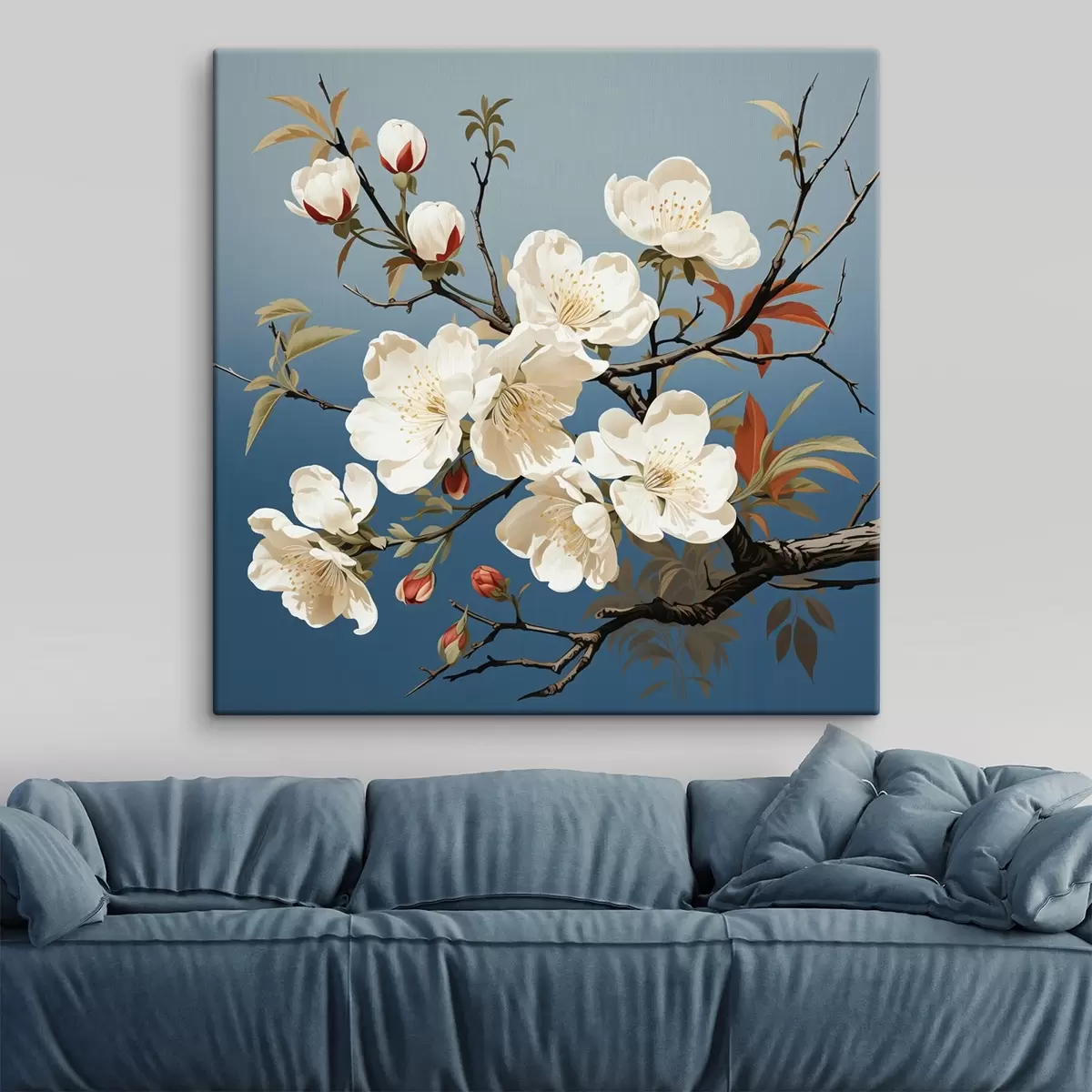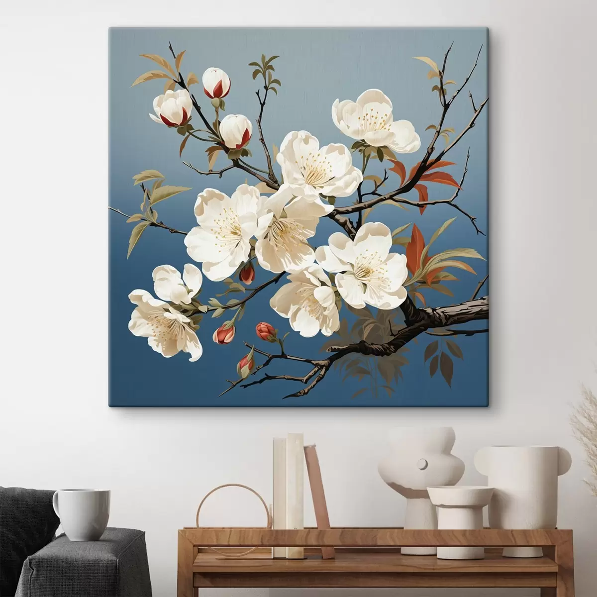 Quadri Ramo di magnolia con boccioli rossastri su sfondo blu Nr s44341