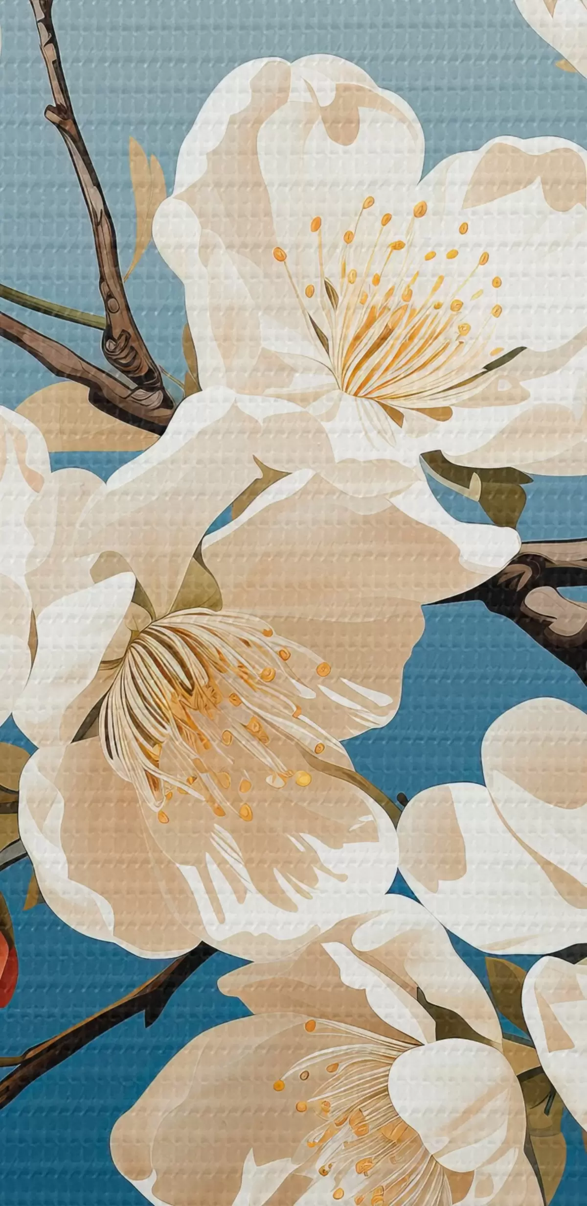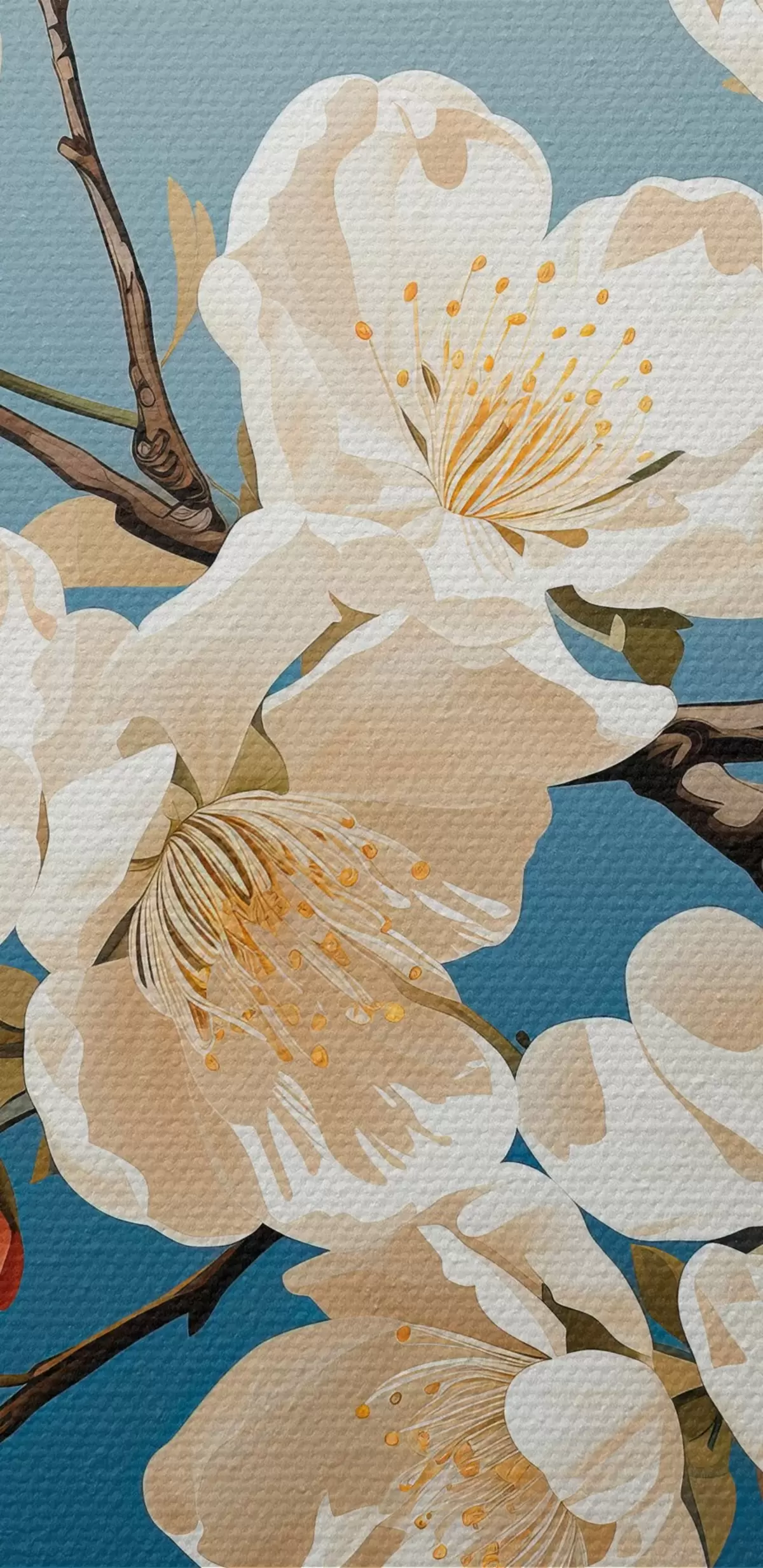 carta da parati Ramo di magnolia con boccioli rossastri su sfondo blu nr. s44341