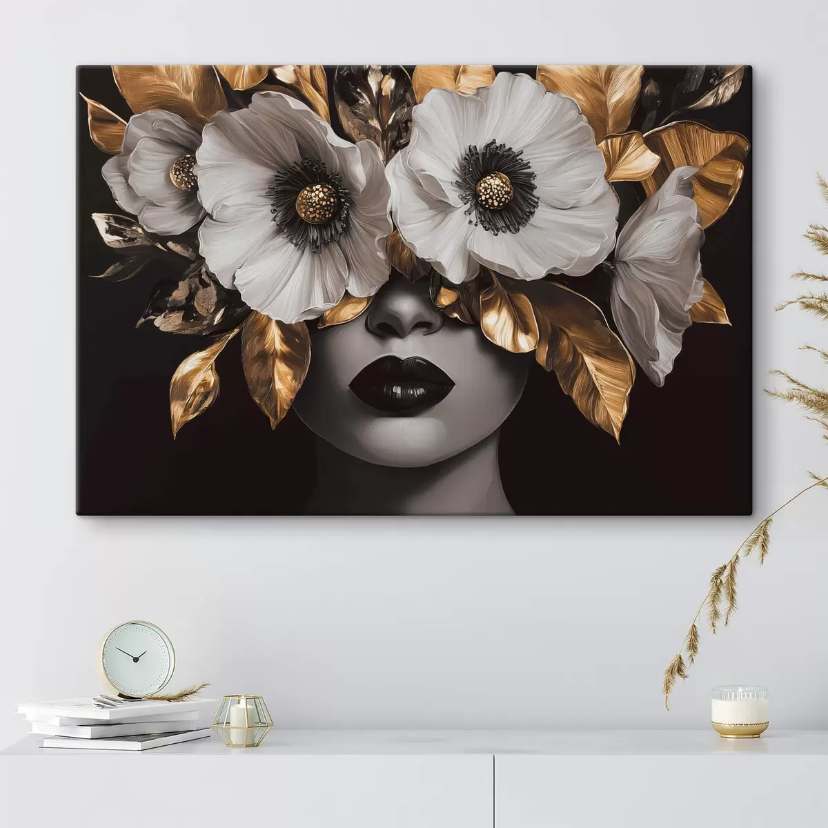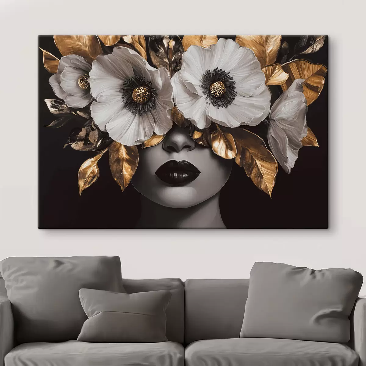 Quadri Ritratto semi-astratto di donna con fiori Nr s44365