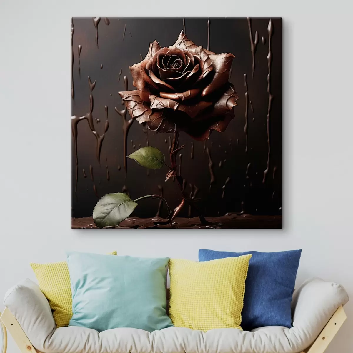 Quadri Rosa marrone su sfondo scuro con schizzi di cioccolato Nr s44381