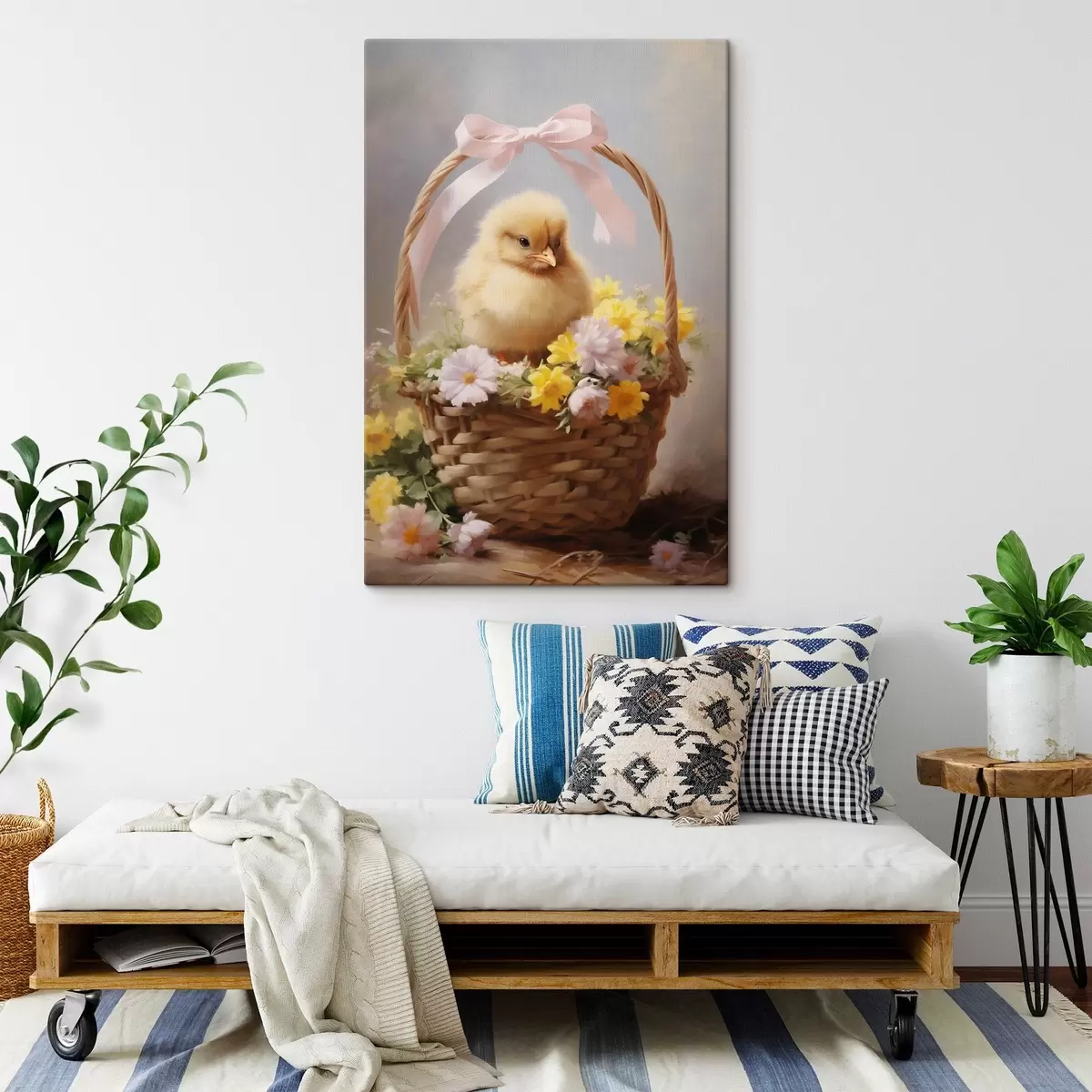 Quadri Pulcino giallo in un cesto con fiori di campo Nr s44384