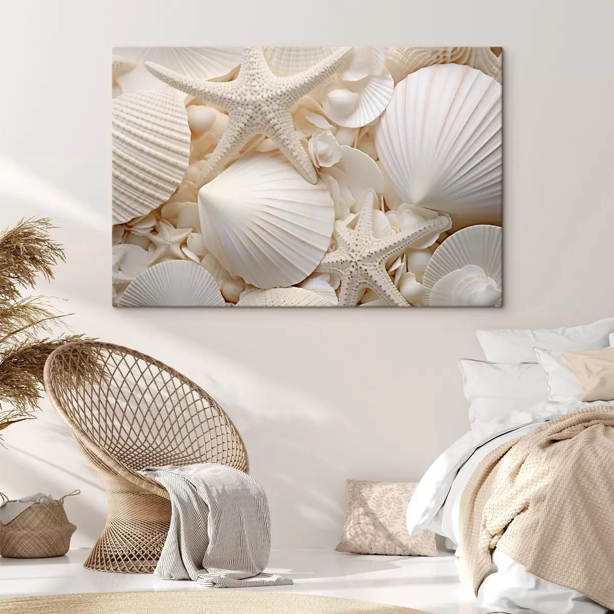 Quadri Conchiglie e stelle marine bianche decorative, che creano una composizione monocromatica e strutturata Nr s44392