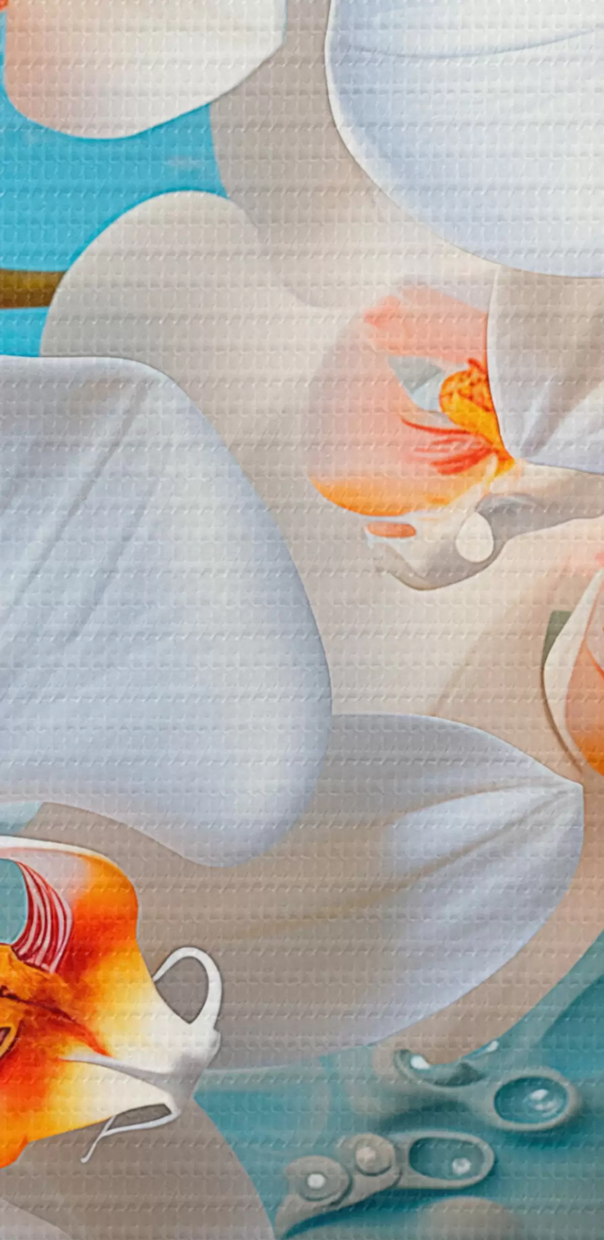 Per tendere la tela su barelle senza danneggiare l'immagine, utilizziamo l'immagine specchiata.