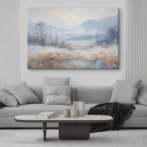 Quadri Paesaggio strutturato con montagne, erba secca e una foresta, colori tenui Nr s44402