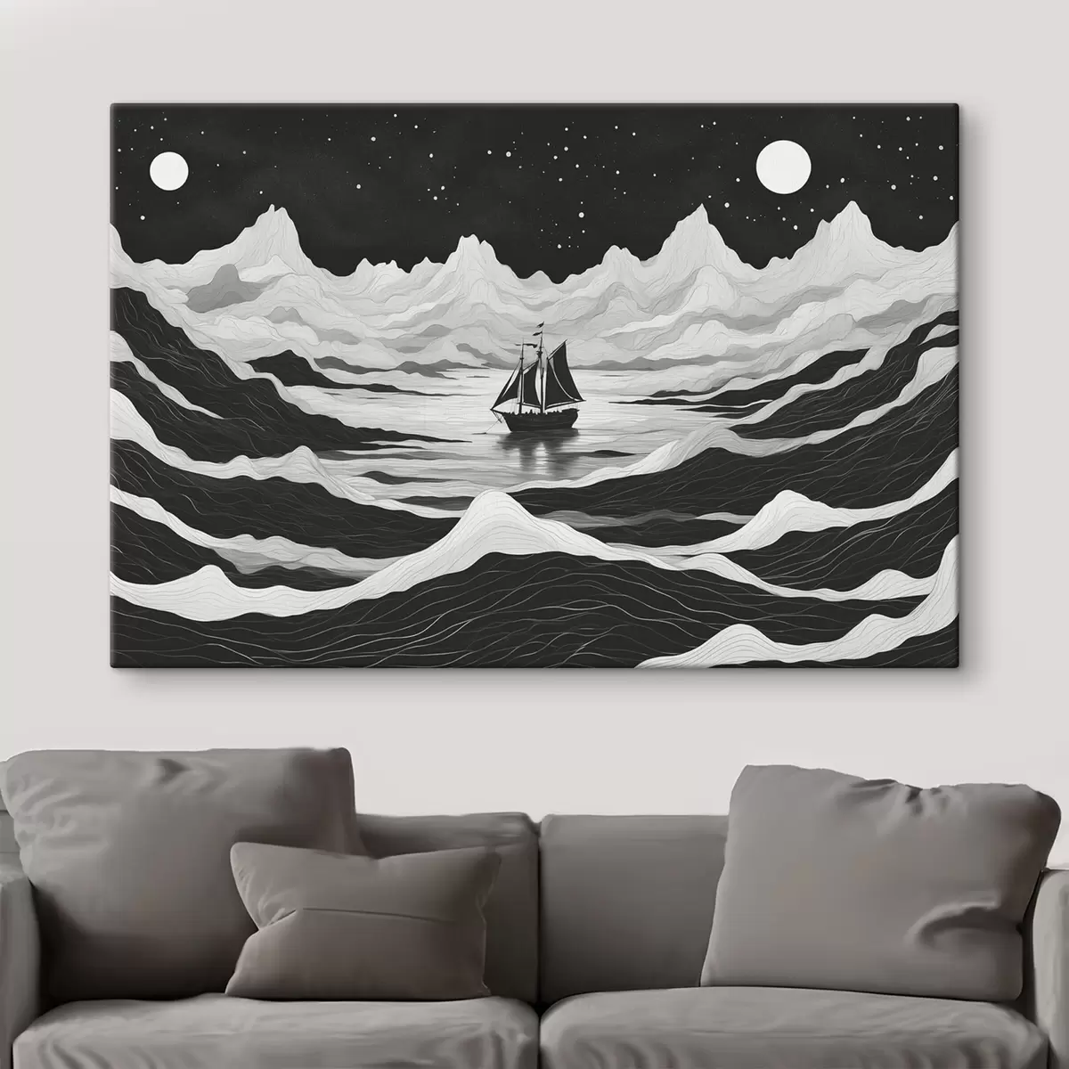 Quadri Nave in un mare notturno e nebbioso Nr s44437