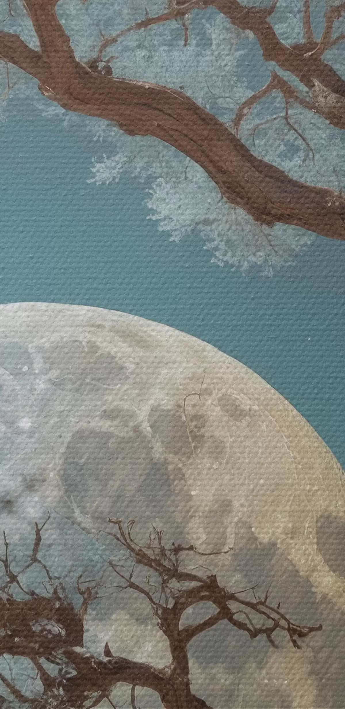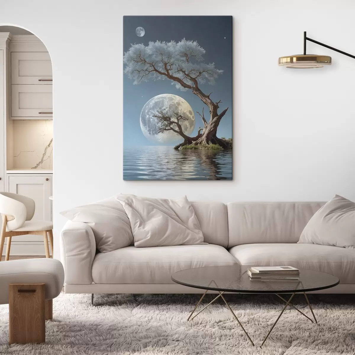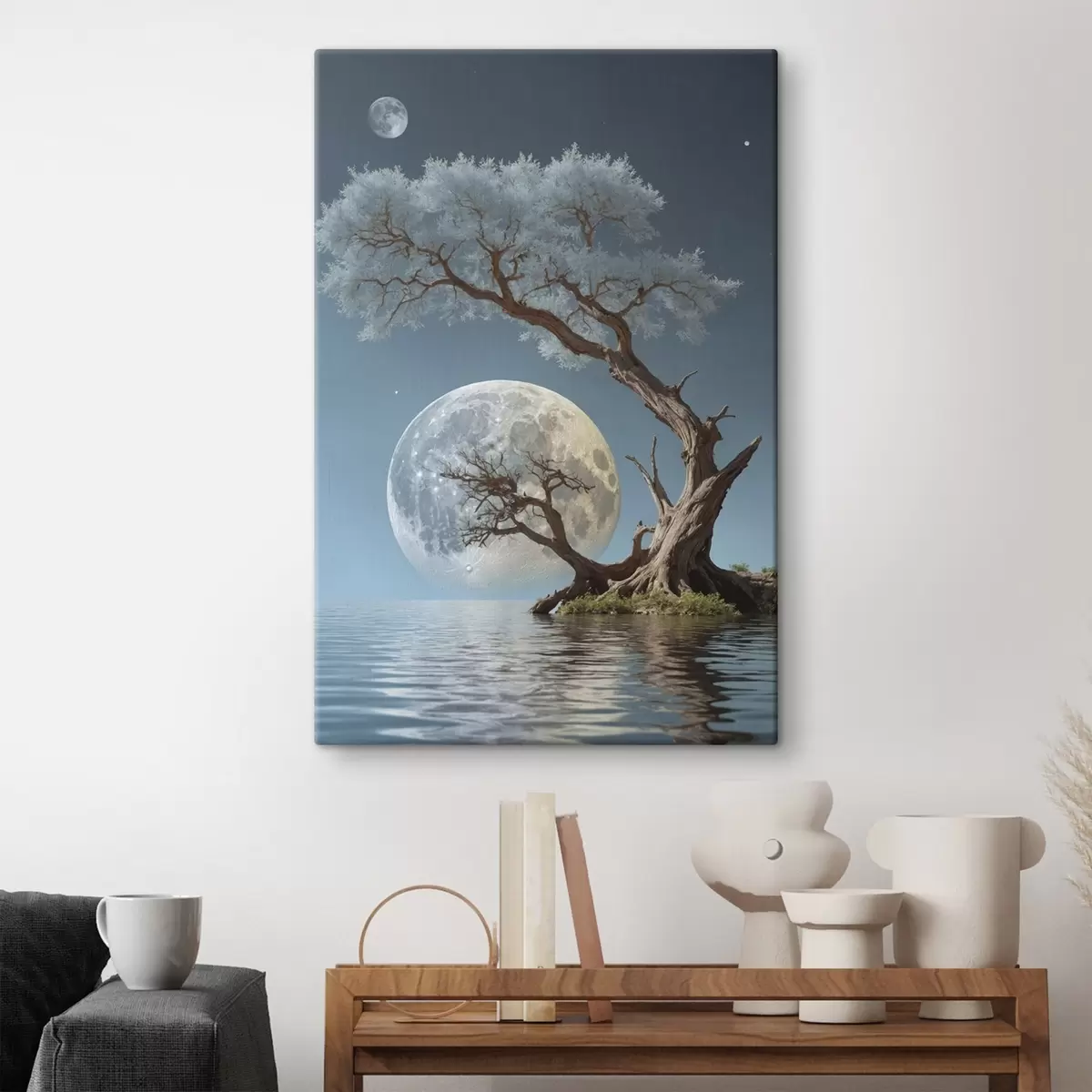 Quadri Albero che cresce in mezzo a un lago su sfondo lunare Nr s44481