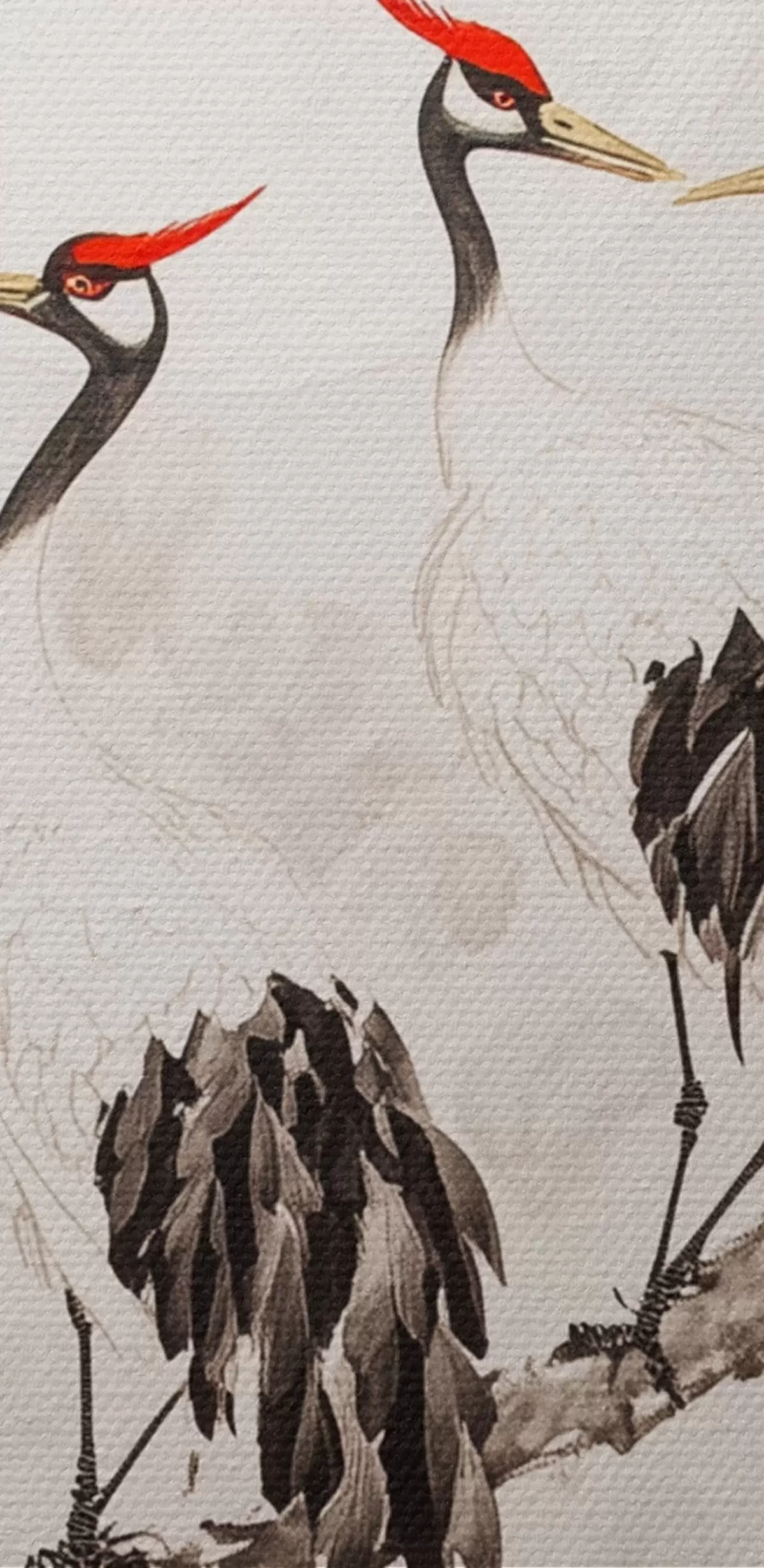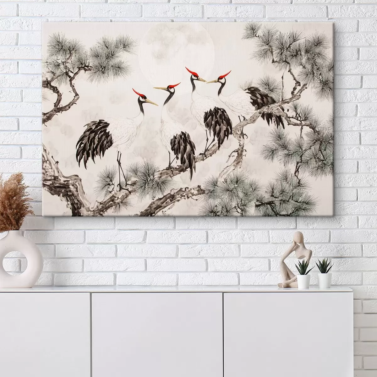 Quadri Arte cinese con gru e pini, stile orientale, natura Nr s44503