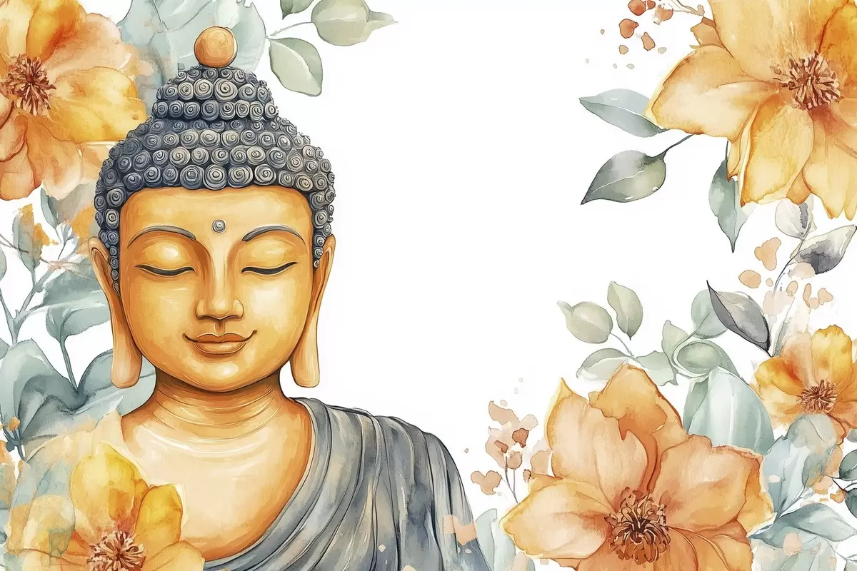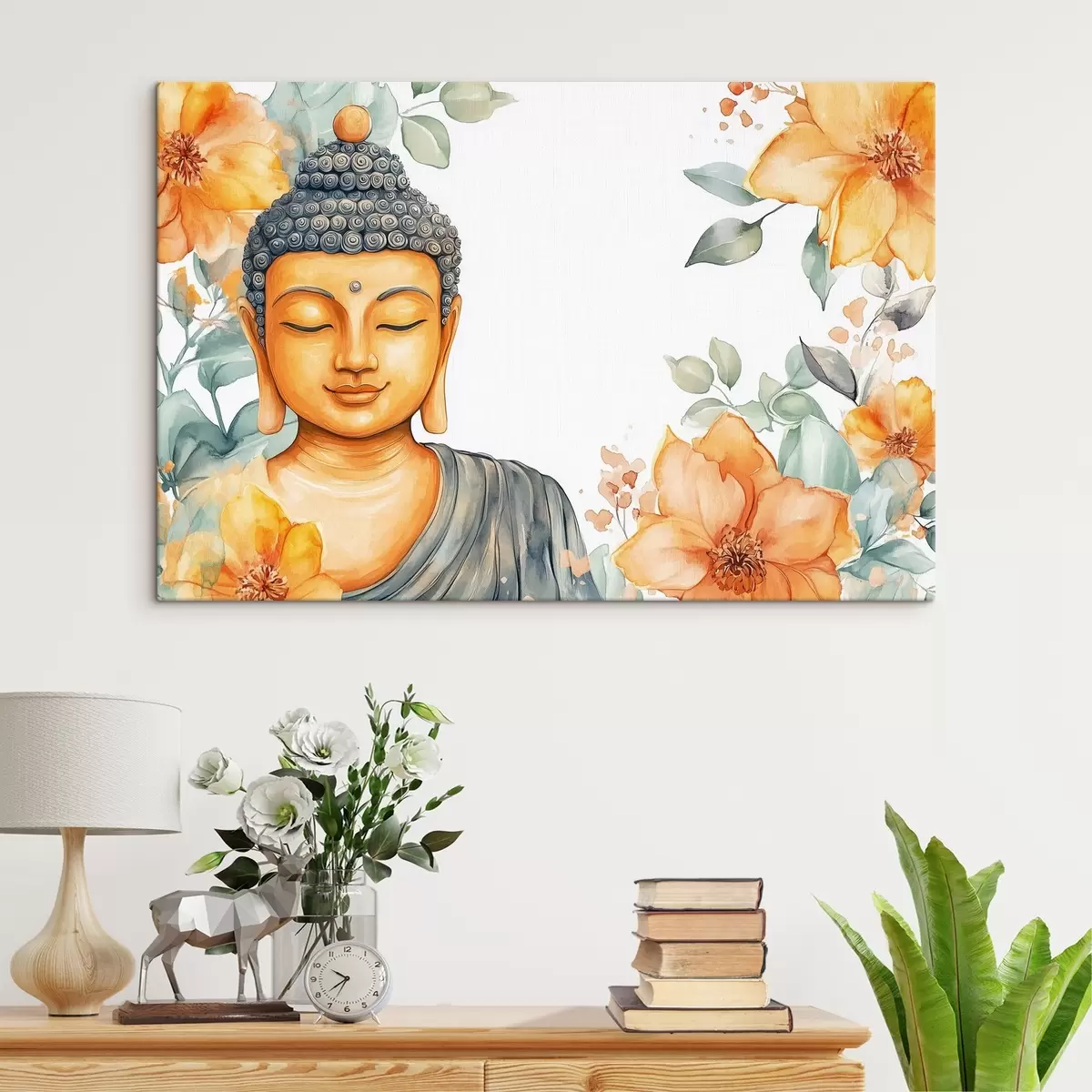Quadri Buddha circondato da fiori arancioni, stile acquerello Nr s44508