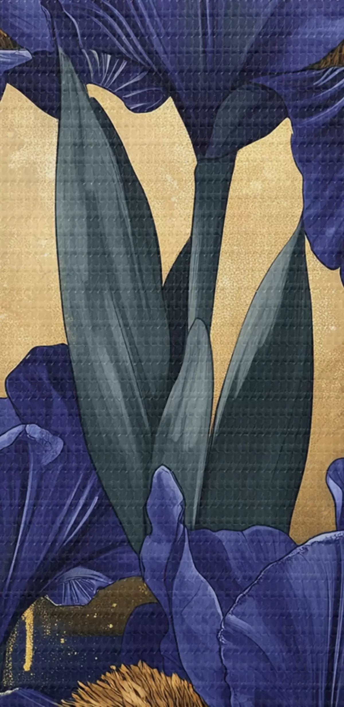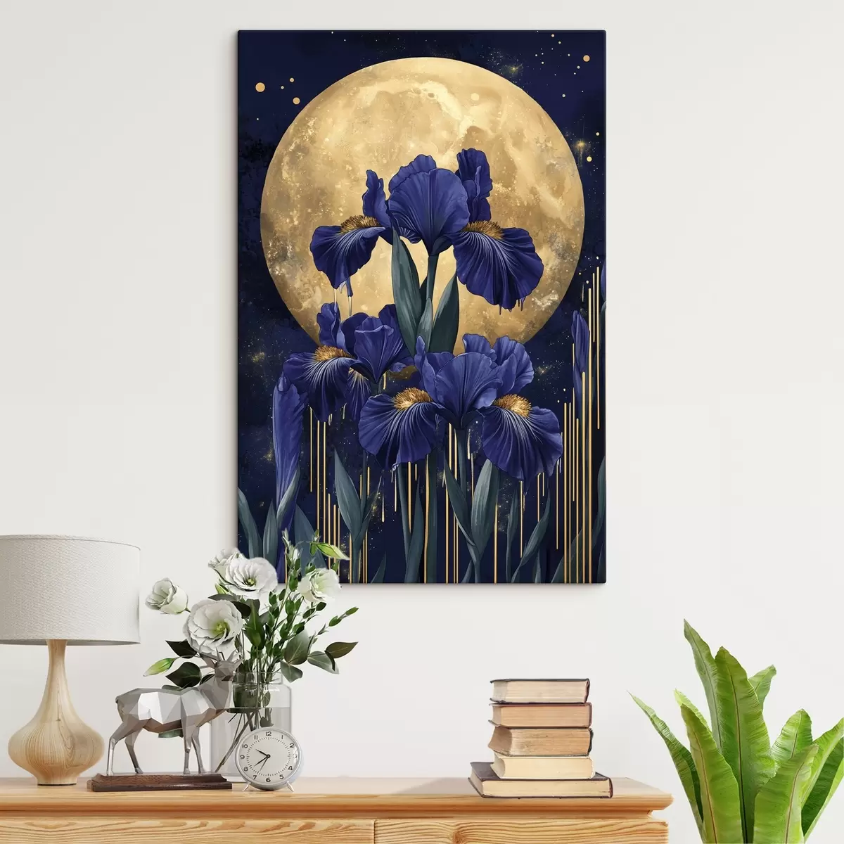Quadri Fiori di iris, luna splendente, cielo notturno, colori blu Nr s44510