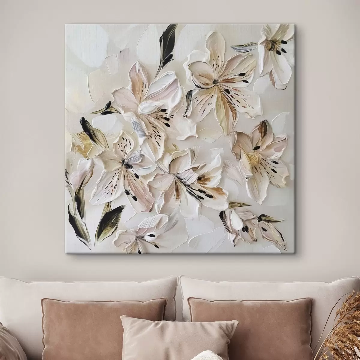 Sono disponibili tre tipi di materiale per l'ordinazione: Economic Canvas - materiale denso e resistente per la stampa digitale, identico alla tela del pittore, superficie impermeabile, riproduzione realistica dei dettagli, materiale a grana media. Premium Canvas - la trama ricorda la tela di un pittore (piccoli fili intrecciati). Riproduzione morbida e dettagliata dell'immagine su una superficie opaca. Eco-Premium - tessuto di alta qualità in 100% cotone. Grazie alle fibre naturali di cotone, il materiale è durevole e resistente all'usura. Eccellente riproduzione dei colori e dei dettagli.