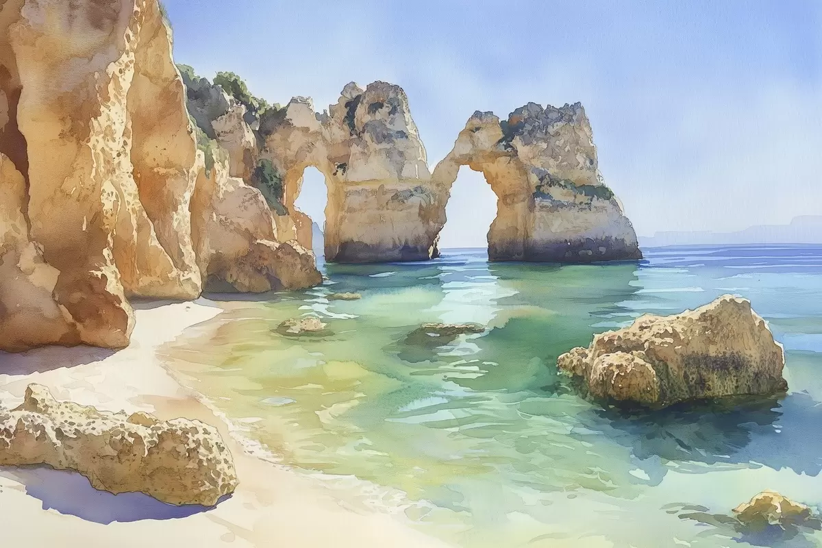 Quadri Spiaggia oceanica con scogliera, Portogallo, estate, acquamarina Nr s44608