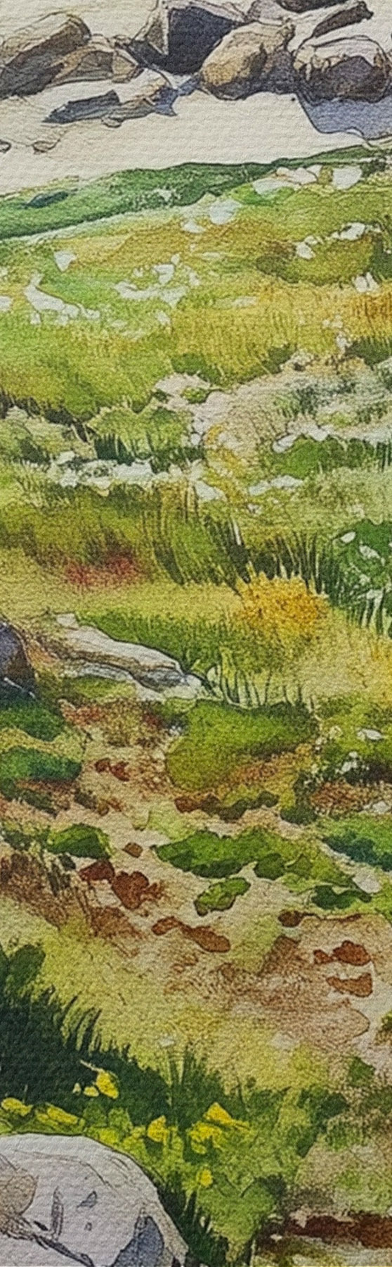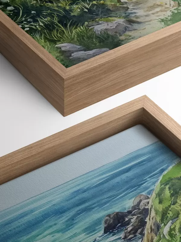Quadri Costa marina con rocce ed erba verde, stile acquerello, estate Nr s44616