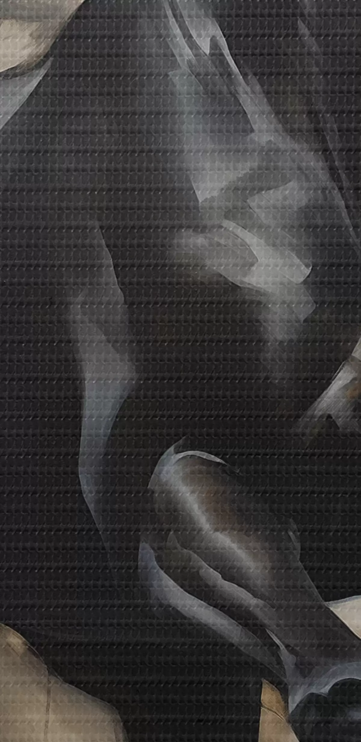 Per tendere la tela su barelle senza danneggiare l'immagine, utilizziamo l'immagine specchiata.