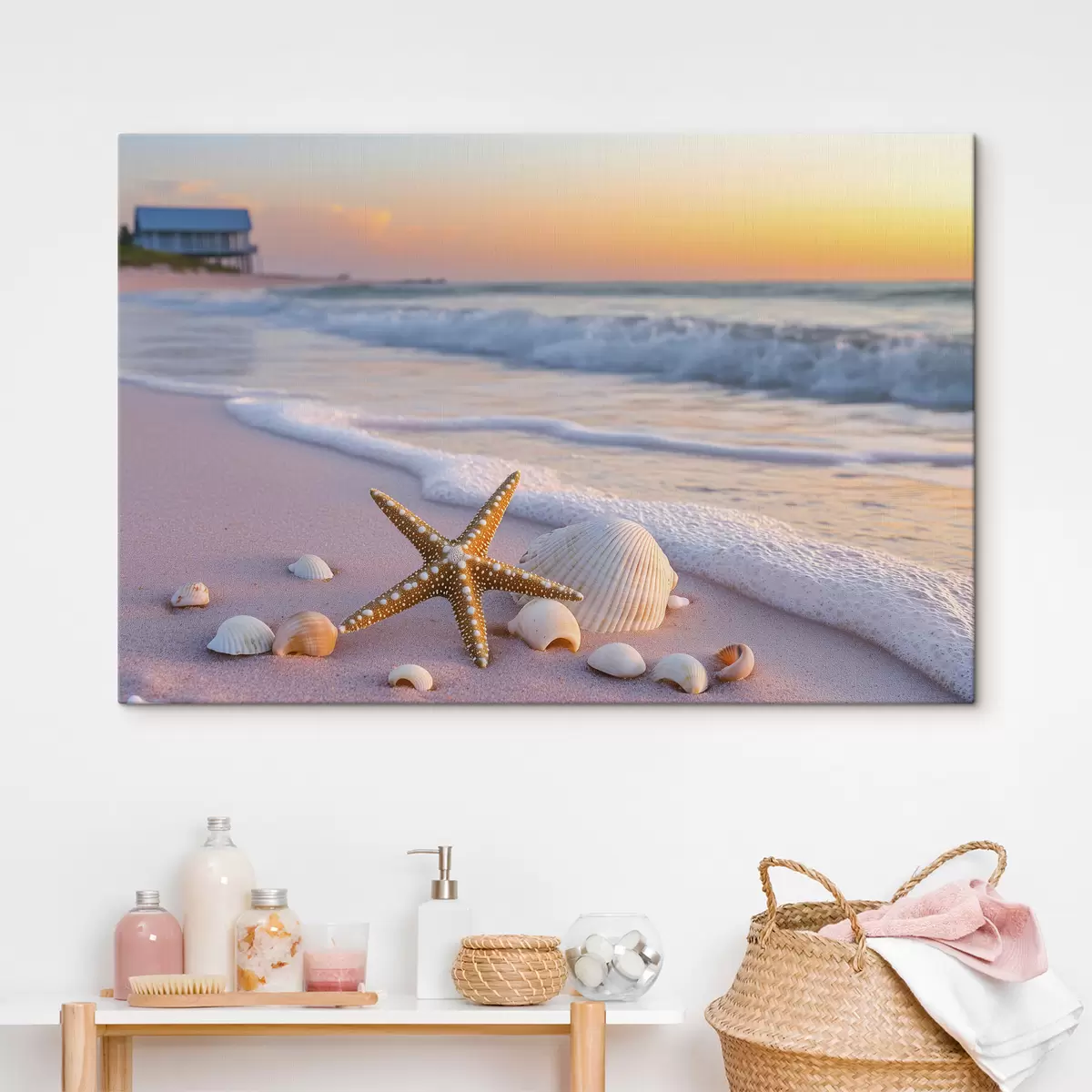 Quadri Costa marina con stelle marine, conchiglie e onde Nr s44714