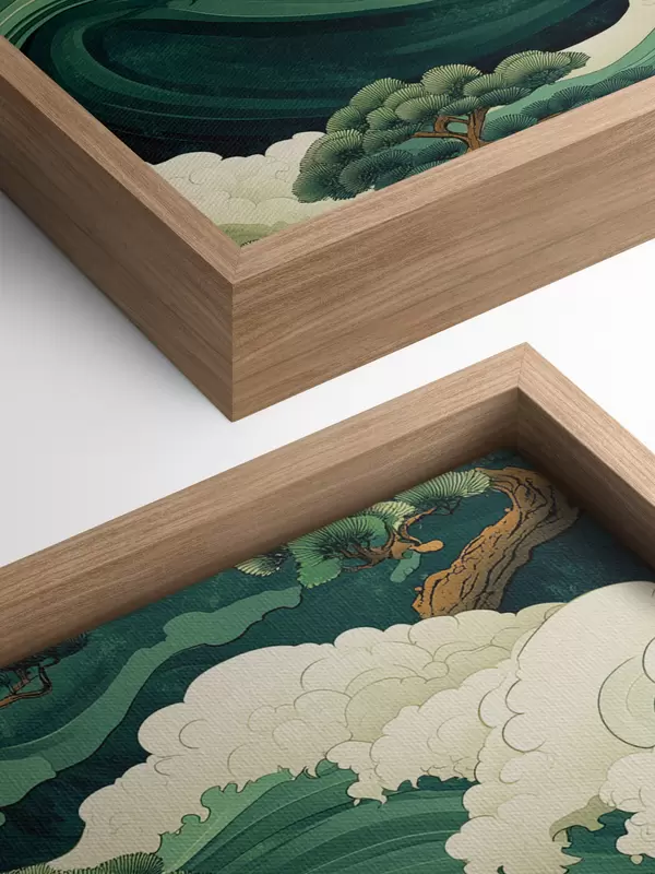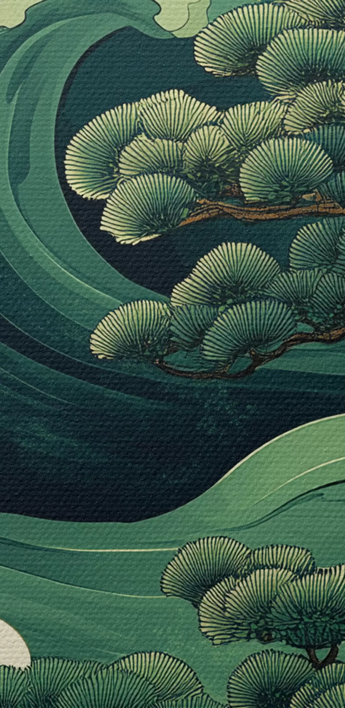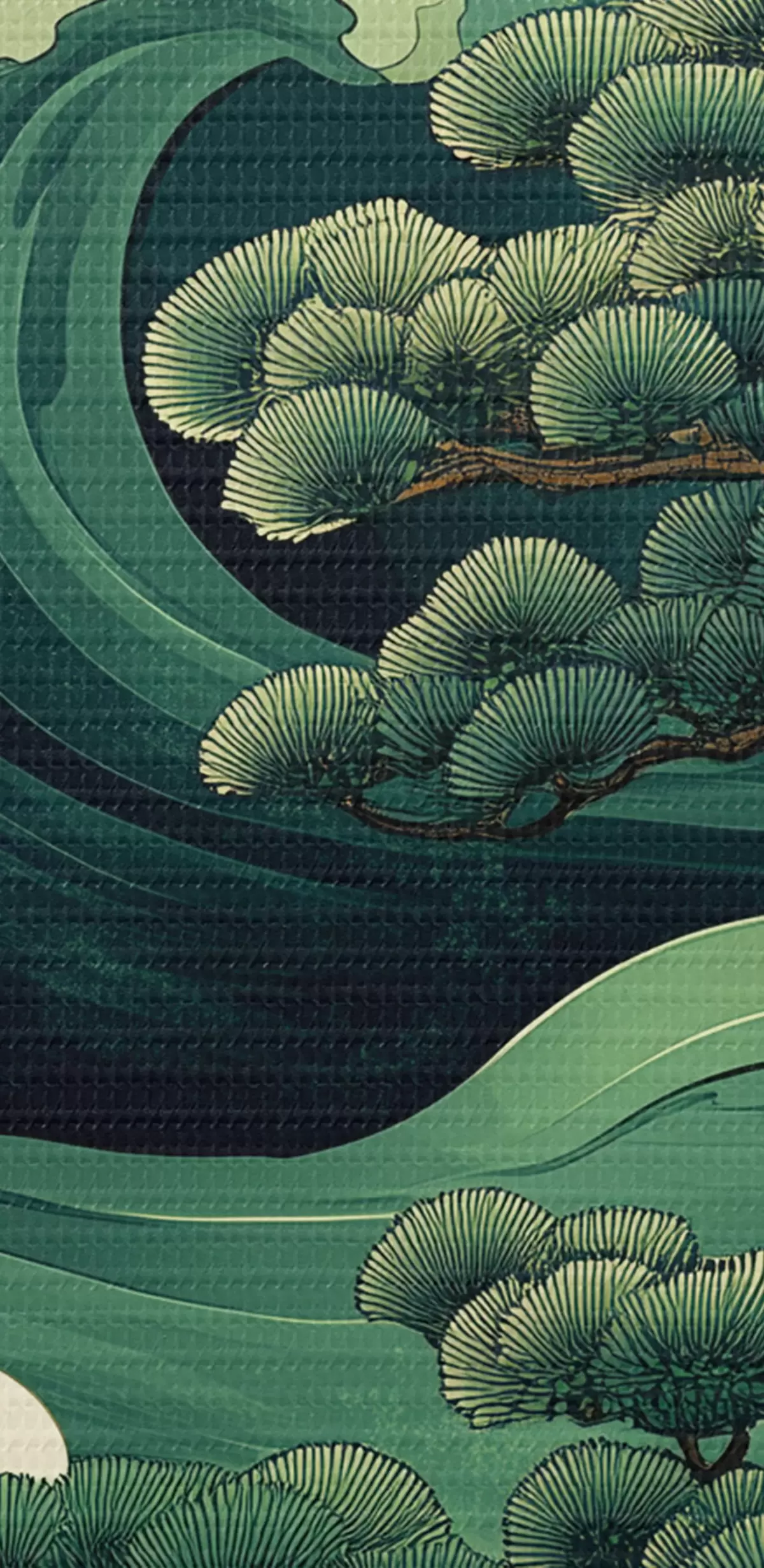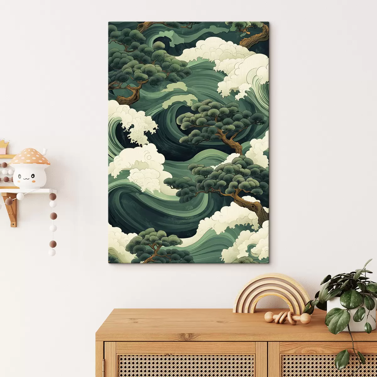 Quadri Disegno in stile cinese con onde del mare e pini Nr s44719