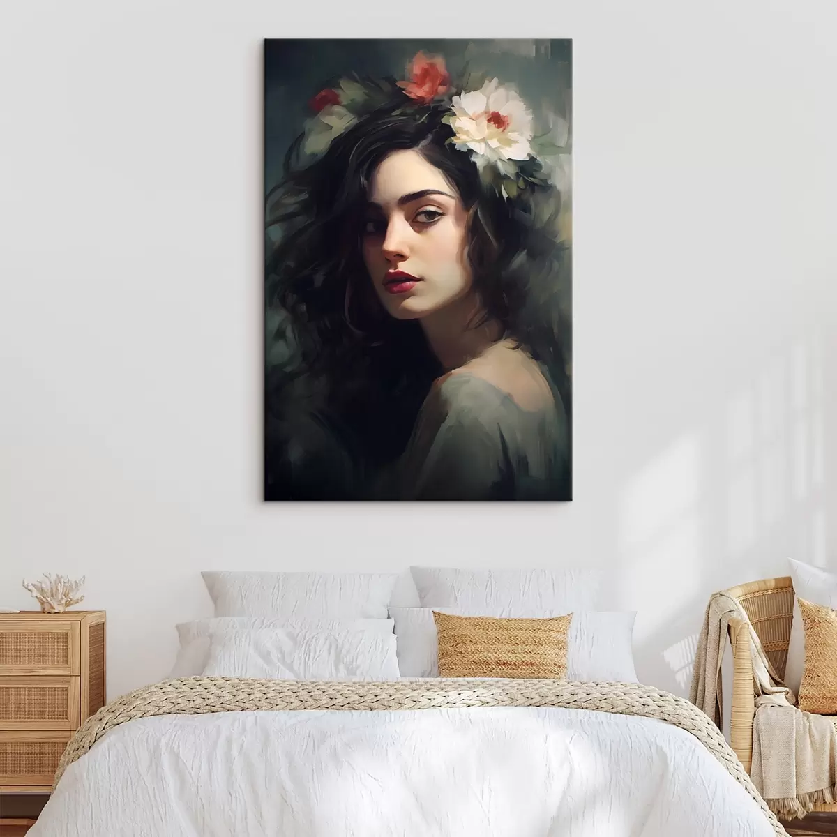 Quadri Donna dai capelli scuri con corona di fiori Nr s44762
